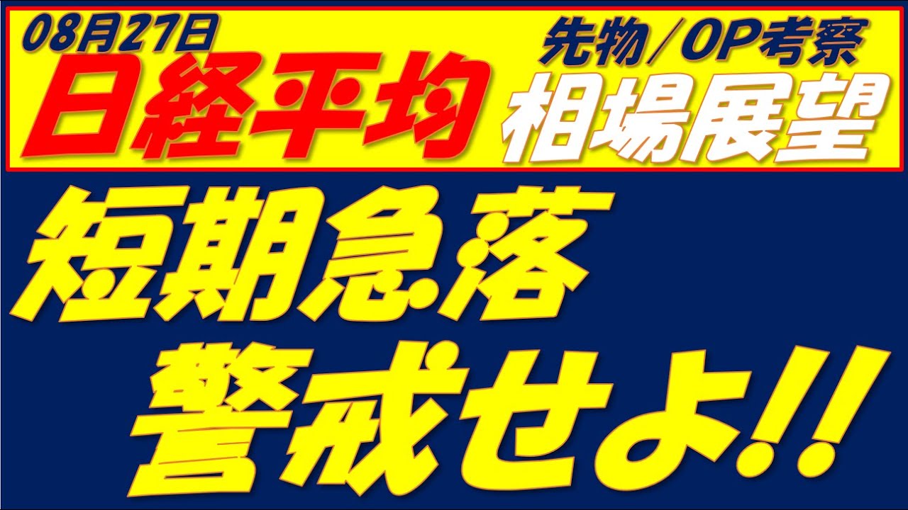 日経平均相場展望250827~ 下げ止まりの前の急落警戒ゾーンです!!