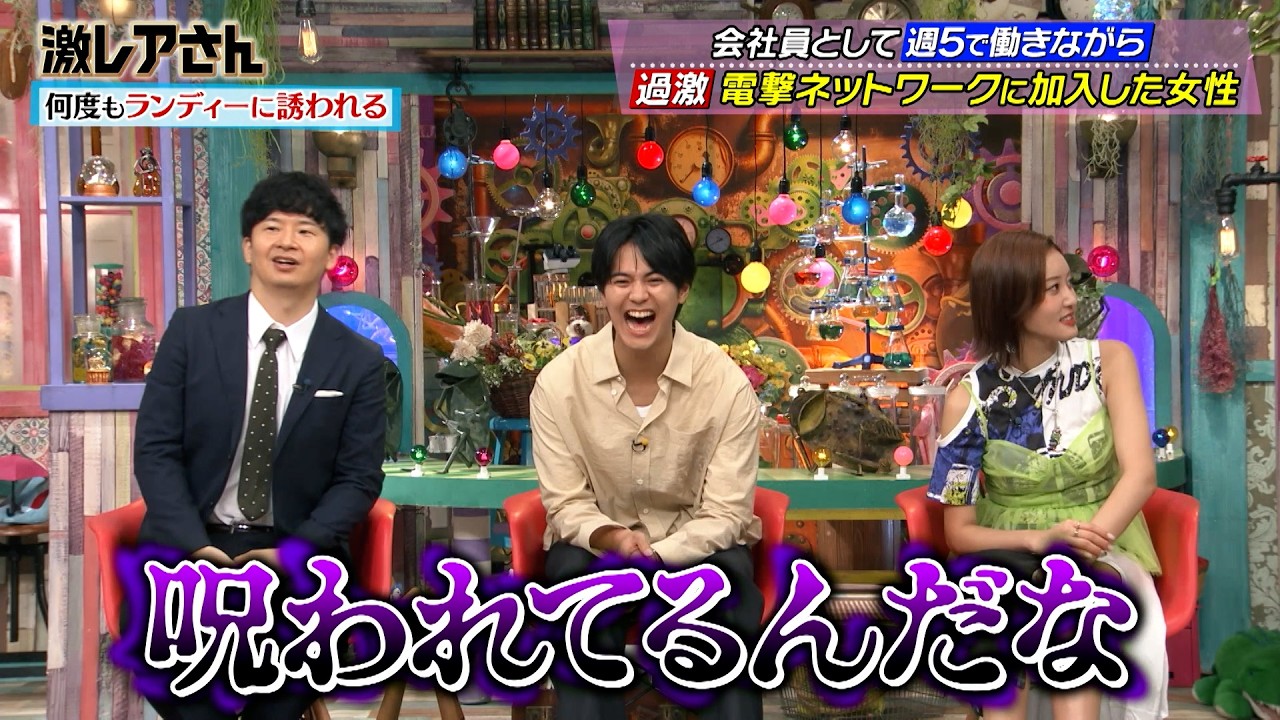 これ去年の9月でございます。 ほ、 ある時友達にちょっと行きたお店があるんだけど飲みに行こうよ。 こんな風に誘われました。 はい。で、時刻は夜の7時。 まさんはお酒が飲めるとワクワクしていますけれどもテンションがダだだ下がり、 あら。うん。 なぜならお店がとんでもないお店だったんですね。 うん。 新宿歌舞伎町にあるバーリタ。 なんでこういう日雨なんだろうな。ちょ、怖いよね。 ちょっと入るには勇気が怖い。だね、こういうところ 入ってみると、 [音楽] え、 壁市一面に仮面や骸骨入るのにめちゃくちゃ躊躇するカオスなバーだったんです。 すごい。こんなとこなの? なんか呪物みたいのいっぱい置いてあってみ物系です。 本当に怖くて全然知らないから 誰なんですかみたいな。電撃ネットワークのランディです。そうなんですね。 あんま喋りたくなかったので。 そうか。怖くてね。ちょっとね。 そう。 で、ここから奇妙な展開になります。 その日はですね、ま、このバーがめちゃくちゃ怖かったので 6チ杯も30杯飲んで 飲んだな。飲んでる。 さん珍しく終年前にはい。家に帰りましたけれども後日ですね、別の友人にわれて、また飲みに行ったお店が偶然。 え、 ランディさんのお店だったんです。 ランディオ様の、 え、別の友人、 別の友人に誘われて、な んだろう?居心地がいいのかな? 縁があるね。 また別の日も友達から誘われて飲みに行くとランディさんのお店なんと奇妙なことにですね。 マク太さんは自分の意思とは関係なく、なぜかランディさんのお店に吸い寄せられるようになってしまいました。あ、 [音楽] すごい。 ま、となるとお店でもね、何度も一緒に飲むようになりまして。 うん。 ま、こんなことを言われてしまうと。 またちゃん電撃ネットワークに入らない。 あら。 いや、それは違うだろう。 なんか急に誘われたね。な んでなんで ちょっと飛んでません?色。 うん。飛んでる。 その時はでも入る意図はなかったってことですよね。 入る気なかったし、まずなんでみたいな。 うん。うん。冗談だとも思うよね。あとで、 そうですね。うん。 でもですね、誘われたのは 1 度だけではなくって、その後も何度かランディさんに電撃ネットワーク入らない。こんな風に誘われて、そのためにごまかしていたので、ま、気まずくなってこのね、バーに行かなくなったんですが、 そうだよ。 なんとマクさんたまたま遊びに行ったラーメンフェスでばったりランディさんに相談します。 あるな。そんなことありえないもんな。 ランディさんがついてきてんじゃないかな。 で、ラーメンフェスでも開光 1番またちゃん 電撃ネットワークに入らない。 いやいやいや、まずラーメンの話でしょ。何食べたでしょう?まず良かった。 どれか言っといたね。行っといた方がいいやつあるでしょ。まず これでもびっくりしましたね。ばったり遭遇そう本当に呪われてるんだなと思ってなってことね。なるほど。 でも、ま、なんでこんなに言ってくるんだろうっていう気持ちと、あとシラフだったんでランディさんが本当にあ 思って言ってるんだなって。ラーメンフェスではね、今まではね、バーだったから [音楽] とりあえず考えますって言っちゃったんですよね、この時。 あ、ま、そうな。 はいはいはい。 こん時誰かに相談とかしました。 いや、ま、会社員なんで なんかうん。 相談できなくないですか?なんか首になったらどうしようとか思うし。 そう。 ネットワーク誘われてるっていうね。 相談はびっくりするよね。 前例はないでしょうしね。確かなるよ。 皆さんも 入らないですか? 天撃ネットワークなんかもう変ななんかひった言い訳しちゃうかもしんない。なんかなんか俺体張っても受けないすよねつって。 最もらしい理由ちゃ オりんちゃんもどう?電撃ネットワークやっぱやだ。なんか結構俺受けると思うよ。 い、大丈夫です。 大丈夫だよね。そういうことじゃないからね、大りんちゃんってね。うん。 でもなんか昼なんですのバンドはね、そういうことやらないわけだからいいもんね。 [拍手] あれは楽しくやらせてもらって楽しくやってるからね。 で、皆さんちょっとね気づくと思うんですけど、ランディさんがなんでこんなにマク太さん、もう普通のね、マク太さんを電撃ネットワークに入れたがるのか。これも気になりませんか? そこめっちゃ引っかかる。 なんかあるのかな? 実は今回ですね、ランディさんにお話を伺ってまいりました。 あら。 はい。VTRご覧ください。 やっとわかる。