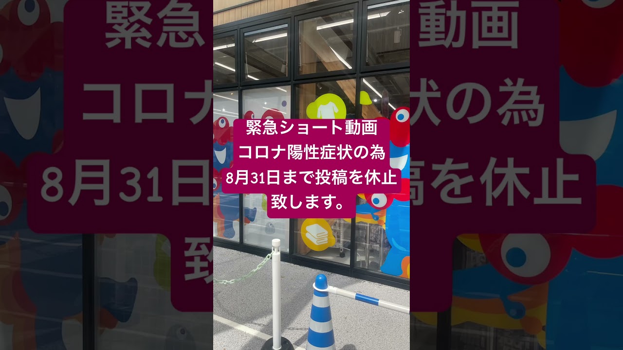 緊急ショート動画 コロナ陽性症状の為8月31日まで投稿休止致します。