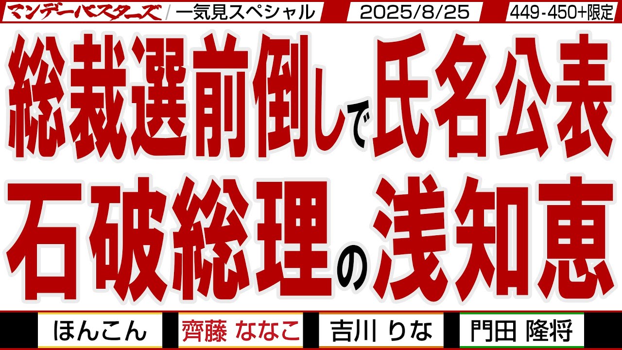 総裁選前倒しで氏名公表 石破総理の浅知恵 / アフリカに舐められる石破政権 / 気になるニュースの裏を読み解こう マンデーバスターズで徹底解説【文化人スペシャル/一気見版】2025年8月25日収録分