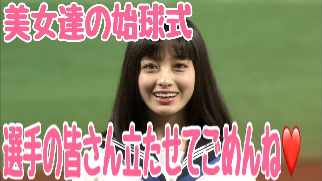 パンチラ美女達の始球式!!野球選手も棒が立ってます