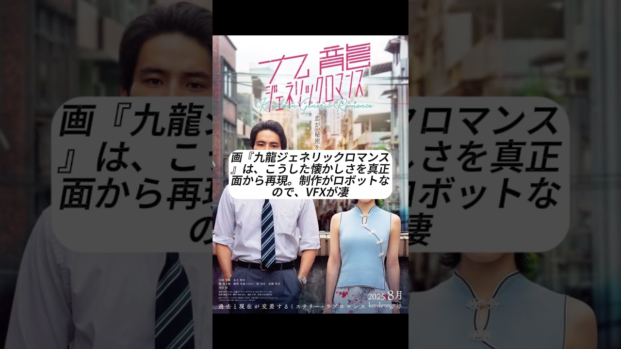 クーロンジェネリックロマンスは良い意味 で変な作品で原作はノスタルジーを軸に ラブロマンスのような階談が展開されるの ですがそのノスタルジーの対象はなんと 香港にあった給流祭傑作トワイライト オリアーズ2025年でも給流は民主化 運動後の民族アイデンティティを確かめる 場所として使われそうした3丁目の夕日 2005年のような場所が日本では ブロマンスを裏読みされてBL人気に日が つきましたがクーロンジェネリック ロマンスでは本格的に日本人が ノスタルジーを感じる場所として使われて います。要はこれは80年代トピア作品で 実際に変換前の給流に行った人が懐かし がるのではなくジャッキーチェンの活躍に よって香港関風映画が最終的に人気だった 1980年代を海の外を経由させて懐かし がっているわけです。そのため映画に先け て映像化されたアニメ版では1990年 前後のアニメのフォーマットを参照する ことによってレトロサを再現していました 。例えば主人公クジ井霊子の着る不 動産会社の制服の色は綾波例が通う新世紀 エヴァンゲリオン1995年の第三東京 市立第1中学校の制服の色さらには友人 要名との関係はアニメ美少女戦士セーラー ムーン1993年から1997年を参照し たものでしょう。メタ的にもジェネリック なわけです。池田千ひによる実写映画 クーロンジェネリックロマンスはこうした 懐かしさを真正面から再現制作がロボット なのでVFXがすごいだけかと思うと思い ますが台湾ロケも実施そこには古い家具や 家電のみならず古い王機器なども揃え かなりの労力が美術に咲かれています。 そしてロボットは段階の世代の青春昭和 30年代を20年前の2005年に3丁目 の夕費として表現した経験もあり、本作が 精神的な後計策であることが分かります。 近年の実写作品はそのかなりの割合が 2.5次元映画、2.5次元というのは2 次元とされる漫画やアニメ、ゲームを原作 としこれを舞台やドラマ、映画などで再現 するコンテンツで要は漫画業界からすれば メディアミックスで設けることができます し、映画会社からすれば政作本数を増やす 上で最初からファンのいる原作物は 美味しい。こうして2.5次元は蘇生乱蔵 されており、原作の魅力が前提となって いるのでこれを超えることはなく楽しまれ ているのは生ぜ出来の良いコスプレなのか 出来の悪いコスプレなのかといったところ 。しかし映画クーロンジェネリック ロマンスにはそうしたコスプレ感がなく むしろ懐かしさに路ジ裏の汚さや人の汗臭 さを転加することに成功しています。自分 はアニメよりも好みでした。ただしカ東語 が薄いのが残念。ネタバレになりますが、 簡単に物語も紹介すると主人公のクジ雷 れ子吉岡は給流の小さな不動産会社に 務める32歳の女性、同僚の男性、工藤 はめ、み上講浩師がちょっと気になってい Yeah.