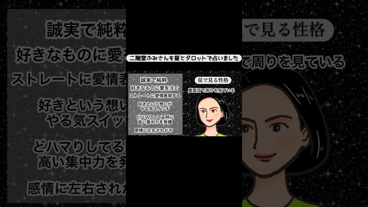 二階堂さんは1994年9月21日生まれ 。太陽星座は乙女座。乙女座は図脳面積で 12星座1のしっかり物です。星座で見る 二階堂さんはとても誠実で純粋です。好き なものには愛を注ぎストレートにその愛情 を表現します。好きという思いがやる気の スイッチです。何かに度りしている時に 高い集中力を発揮します。感情に左右され がちですが、基本は真面目で周りをよく見 ています。自分らしく行きたくもあり、人 を支えたいという思いもあります。完璧 主義です。次はタロットで二階道さんの 運勢を見たいと思います。 守りを意味するカードが出ました。2階道 さんは今自分のポジションを守る意識が 強いと出ています。結婚という大きな筋目 を迎え、仕事やこれまでの評価を維持して いる状態のようです。原因のカードを見て みましょう。自分自身と向き合うことを 意味するカードが出ました。周りに何を 言われても自分がどうしたいのか自分で 答えを出したいという思いがあるようです 。