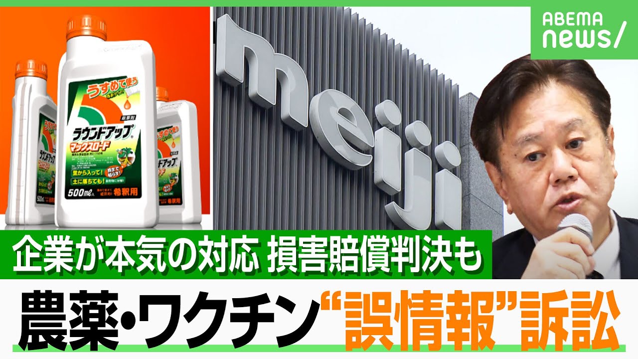 [音楽] 当社及びラウンドアップへの誹謗中傷に 対する損害賠償請求訴訟の進捗についてお 知らせいたします。 この度定いたしました複数の訴訟について いずれの件も当社の主張が認められ賠償 判決または和による若金支払いという結果 になりました。 22日、Xに高投したのは女装罪 ラウンドアップを製造販売する科学 メーカー日産科学です。 日産科学はこの製品について虚偽の情報が インターネット上に書き込まれ、製品の 評判が既存されたとして複数の投稿者を 相手に東京地裁に損害賠償請求を起こして いました。その結果、東京地裁は企業の 名誉既に当たるとして投稿者に賠償を命じ たのでした。 実際に投稿されたこの製品についての虚偽 の情報にはベトナム戦争に使われた カレハ剤の成分グリホサートが配合という ものや神経発達障害や癌を誘発するといっ たものがありましたがこうした虚偽の情報 に対して日産科学側はこの製品が金ハ剤と は違う成分であることをXの投稿などで 説明 食品安全委員会は神経独性、発性、繁殖能 に対する影響、再形性及び遺伝独性は認め られなかったと評価しています。 日産価格は当社の目的は訴訟によって賠償 金を得ることではなく、正しい情報が多く の方に伝わりユーザーが安心して ラウンドアップを使用できる環境を作る ことです。 メーカーとして正しい情報発信と誹謗中傷 に対する気とした対応を継続していきたい と考えていますとしています。 他の企業も訴訟を起こしています。 2024年12月、新型コロナワクチンを 製造販売する明治化が立憲民主党原口和 氏を始め複数人に損害賠償を求めて 原口市についてはワクチンを生物兵器など と発言した動画配信やSNS投稿を問題し ました 原口市は会見を開 論大臣 裁判は現も継続中です。所をしていました。 希望中傷や虚偽の情報などに対して企業はどのような姿勢を取っていけば良いのか インターネット上の誹謗中傷などトラブルに詳しく今回のラウンドアップの訴訟では原告側代理人でもある清水傭兵弁護士に聞きました。 既然とした対応と多分いろんな方法があっ て、え、削除するっていうのも1つ でしょうし、ま、事実関係こうですよって 発表していくということもあるでしょうし 、ま、今回のように相手を特定して責任 追求をしていくという、ま、いろんな段階 とあの方法というのは多分あるですよね。 こうした投稿を行った人はどのような責任に問われるのでしょうか?悪気がなかったとしても法的責任に違いを生むことはあまりないと言います。 放撃してやろうっていう悪意がある方が悪質性は高いとは思うんですけど、ただ企業の立場で間を拡散されている側の立場からすればどっちもそうやっぱり大問題なわけで受ける損害の程度としてはあまり変わんないんじゃないかなと。 法的な責任の度合って意味ではそんなに違いはないか。 悪気がなく投稿した内容でも謝った情報で企業に損害を与えると訴訟となる可能性がある中、清水弁護士は SNS などネット上に投稿する際に気をつけるべきことについて次のように話しました。 自由には責任が伴うっていうことですよね。 発信するのは自由だけど、それがデマだった場合に責任が多い可能性がありますと。デマだった時に自分が困ることになるわけなので、ま、デマかどうかをきちんと調べましょうというのがまず必要なのかな。 ということでラウンドアップに対する SNS での誹謗中傷について日産科学によりますとこういったものがあったそうです。事例です。 こういった誹謗中傷に対して当初は生する予定方針でしたがご情報や誹謗中傷が蔓延しため訴訟に踏み切ったということでしたが事業のご情報対応というのは難しいですね。 難しいですね。で、ま、従来日本企業は反論しないということも多かったんですが、 SNS のご情報ですね。ただし反論しないとですね、ます広がってしまうというとても難しい状況だと思います。 うん。もう背に腹は変えられない。 せには変えられない。 それから、ま、その訴訟をする、あるいは訴訟の対象になるということを日本企業は避けてきた経緯があります。あんまり訴訟やってるとあの会社は、あ、ま、火に火のないとこに煙は立たないじゃないですけど、何か問題があるんじゃないのかなと思われがちな社会なんで、あんまり 訴訟を好む社会じゃないです。ですよね、我々社会は。 はい。そもそもこう訴訟を抱えているっていうのがあんまりよく見られない。 そうです。評判を悪化させたりレテーションリスクにつがる、ま、評価が既存されてしまうっていう風に考えられてきた側面あります。 ただもう背に払は変えられない時代になったということなんじゃないでしょうか。 こう訴訟に対するイメージも変わってきましたね。そう思うと。 そうですね。特にインターネット上の誹謗中に関して、あるいはあ、そうですね、虚偽情報の問題に関して、例えば開示請求を行うとか、あ、名誉既でです