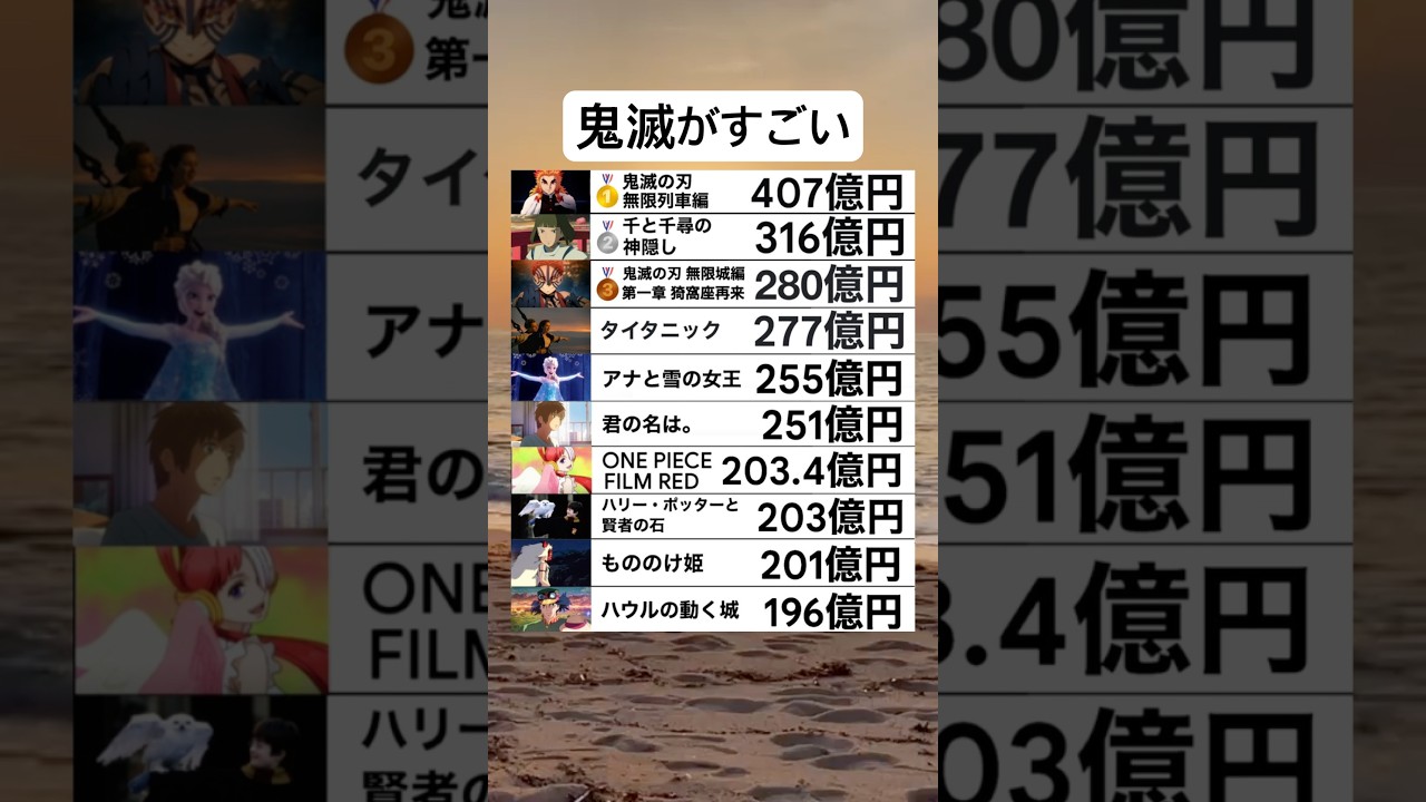 8月25日日本歴代映画興業収入ランキング #shorts #twitter #おもしろ #おすすめ #鬼滅の刃