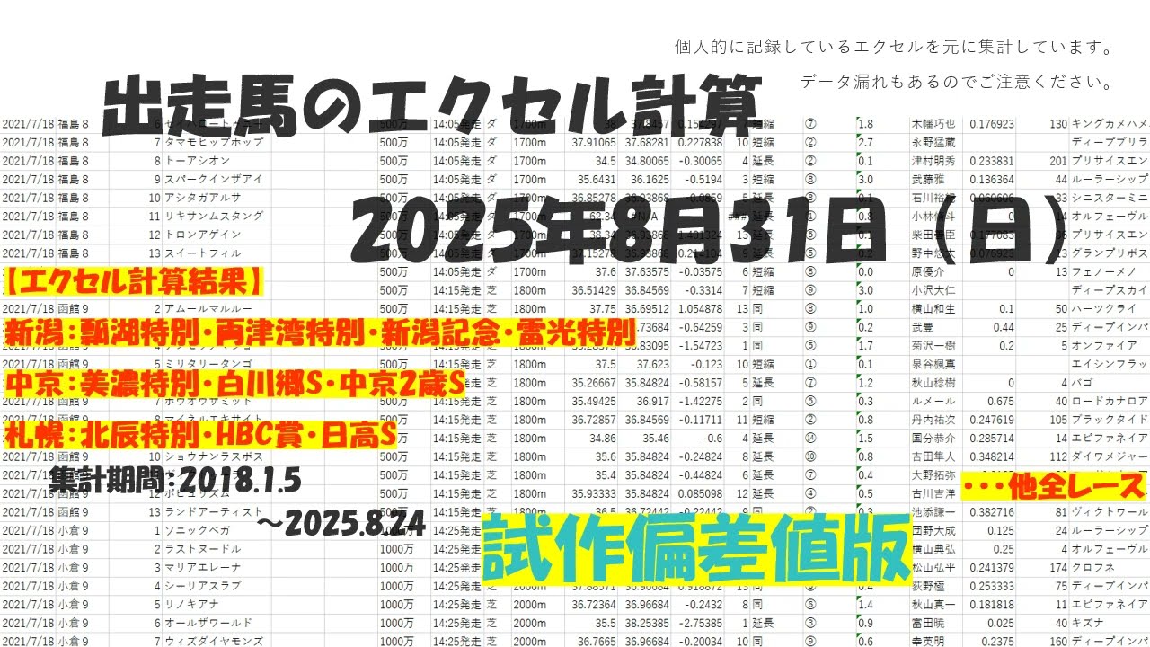 【競馬予想】過去3走分の偏差値をエクセルで計算してみた【2025年8月31日(日)】