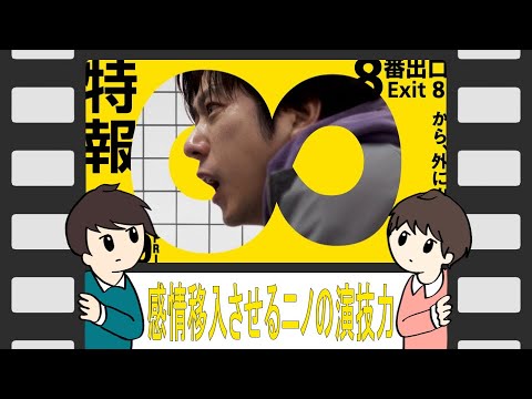 このチャンネルは映画好きの兄弟が週に 1 本作品を選定し、好き勝っておしりするチャンネルです。 [音楽] ありの穂高です。弟のみさです。 今週紹介する作品はこちら。 8番出口。 はい。ということで、え、現在劇場で公開されている 8番出口を2人で見ましたけれども はい。 えっと、ま、予告見る限りだとちょっと全然どういう話か分からなくて、え、元々映画が原作ということらしいんですけれども、全然僕そういうゲームを知らない状態で [音楽] うん。 見に行きました。結構お客さん入ってましたよ。 あ、やっぱ入ってた結構。 うん。 こっちもまあまあ入ってたね。もう普段映画見なそうな なんかこう 中高生みたいな人もまあまあいて。 あ、本当こっちは結構年齢が高めだったな。ま、朝早かったかも。うん。う ん。2、2 って人気なんだなっと思ったよ。 ああ、ほんまやな。 人気なやな。 うん。うん。 で、え、監督が、え、川村元貴さんと [音楽] はい。 川村元気さんの映画って監督やってる映画は初めて見たかもしんないな、僕。 そうやね。 あ、プロデューサーはね、ちょこちょこ見てる気がするけど。 うん。うん。ね。やっぱ1 作たくさん作ってるから。 うん。 あれだけど監督の作品はもしかしたら初めて見たかもしんないですけど。 うん。うん。うん。 95 分とそんなに長い映画じゃないんですけど。 [音楽] そうね。 うん。面白かったすよ。僕は結構。 ほんま?あ、良かった。 うん。全然何の前知識もいるずに見てたけど。 うん。うん。 な、な、何て言うんだろう。あの、ま、主人公に感情引慮して見れたんじゃないかなと思いますよ。うん。やっぱ、あの、ま、 8 番出口っていうゲーム自体は俺も知ってていけど、そのストーリーっていうのが全くないからゲームとしては うん。うん。 どうすんのかなっていう風に思っててんけど うん。 やっぱ、あの、俺入りの辺りがすごい良かったなと思って。 入りうん。 ずっとその1人称して ああ、そのそうね、あの後ろ背後から取ってるんでもなくって 12章本当に自分の主観ですね。 主観映像。うん。2度、2 度の視点なんだけど2 度は映ってないっていうほと主観の うん。 視点ですね。はい。 そう、そう。 で、入れて、しかも割とこう、ま、実際はどうなんかわからんけど、こう長で取ってたというか、 もうかなりあの、なんて言うんだろう。切ってなかったね。 切ってなかったよね。 うん。 っていう辺りがやっぱその うん。 この状況に入るまでに うん。 なんでこの状況になるん?その日引っかかったらやっぱちょっと入れへんやんか。 うん。うん。うん。 っていうのが割とシームレスに入れたなっていう風には うん。思ったね。 うん。そうだね。あの、撮影は結構通して、あの、別にき、 あの、ずっと あの、か、カットなしみたいな映画ではないんだけれども、結構長回しが多くて うん。多いね。うん。 うん。あの、なんて言うんだろう。やっぱり集中が途切れないよねっていうのが うん。うん。うん。 やっぱりいい映画の条件というか、やっぱ主人公に共感したいから うん。 それをさせてくれるカメラワークであり、あとやっぱりノが うん。 芝居がうまいってのもあるんやけど、リノのなんて言うんやろうな。あのスター性を消す、消すことのできるあの うん。 本当はあんなうつの上がらない人間じゃないのになんかちょっとうつの上がらなさをやられたらすごいうまいっていう。 [音楽] いや、うまいよね、本当に。 うん。 ああ、その通りやわ。 で、全速持ちでいい設定でやっぱちょっと苦しいっていうのもちょっとこっちも苦しくなってくるしね。 うん。 あれはね。うん。あの主人公をやらしたらやっぱりね、本当に素晴らしいと思う。 うん。そうな。 誕生移入しやすいんじゃないかな。 うん。あの、息が浅い感じとかこう集まってる感じね。 うん。で、なんかその接迫というかさ、もうこのイライラというか、ま、ずっと [音楽] 8 番出口を目指してなかなかで出られないという状況がね。 うん。 そこにていうのでうん。 うん。 なんかこのゲームやると うん。 その前から男が歩いていくやんか。 うん。うん。うん。歩く男ね。うん。 で、歩く男。 うん。 で、あの歩く男バージョン、その歩く男がどういうやつやったかっていう背景も実は出てきて あ、この映画でね。うん。 この映画で。うん。 あ、なんか まあまあもちろんそういうことをしないと尺が足りないっていうのはあるんやろうけど うん。 なんか意外とそういうのがあったんやなみたいな。 そうね。あのや、そうなんよ。でもやっぱあれがあるからちょうどこの 90分95分の尺で うん。 うん。 見れたっていうのはずっとあるよな。やっぱりそのずっと 出られへん出られへんっていう 2 度してんだけどやっぱちょっときつかったなっていうのが [音楽] うん。うん。うん。ちょっときついね。 うん。 ああちに移ってなんかやっぱりそこで うん。 お同じ風景でもやっぱり