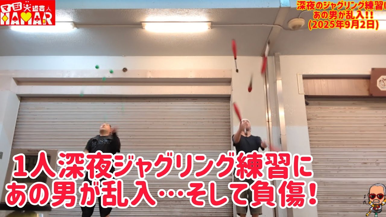 1人深夜ジャグリング練習にあの男が乱入…そして負傷! 爆笑連発の練習会!