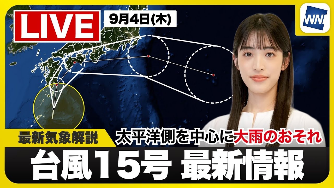 【ライブ】最新天気ニュース・地震情報 2025年9月4日(木)/台風15号発生 西日本太平洋側は大雨に警戒〈ウェザーニュースLiVEサンシャイン・松本真央/山口剛央〉