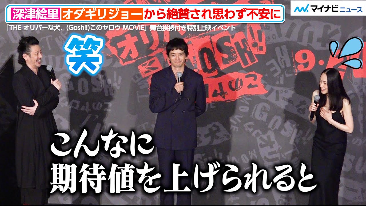 俳優の池松壮亮、深津絵里、監督のオダギリジョーが3日、都内で行われた『THE オリバーな犬、(Gosh!!)このヤロウ MOVIE』舞台挨拶付き特別上映に登場した。
