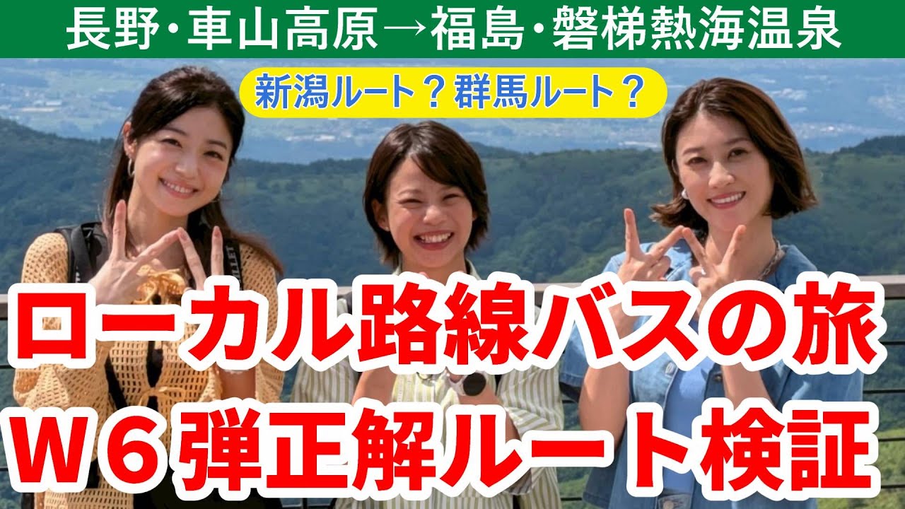 テレビ東京系列の「ローカル路線バス乗り継ぎの旅W」の第6弾が放送されました。リーダー髙木菜那に加え、中村静香、原幹恵が参加。女性3人が、長野県・車山高原から、福島県・磐梯熱海まで、3泊4日のバス旅に挑戦しました。