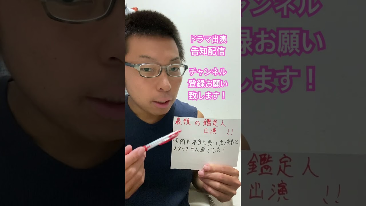 はい、皆さん瀬戸口吉之です。今回の ドラマ出戦告知はこちら。フジテレビ最後 の鑑定人第10話警視点であります。私は 次回放送される最後の鑑定人第10話に 警便役戦させていただいております。今回 も本当に良い戦者とスタッフさんたちの 現場でありました。皆さん作品の応援を 是非お願いします。それでは皆さんまた 次回。そしてこのYouTubeの チャンネル登録も是非お願いします。それ では皆さんまた次回。次回絶対見て ください。