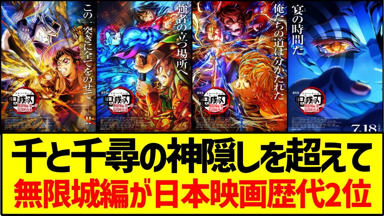 鬼滅の刃、千と千尋の神隠しの興行収入を超えて日本映画歴代2位へ