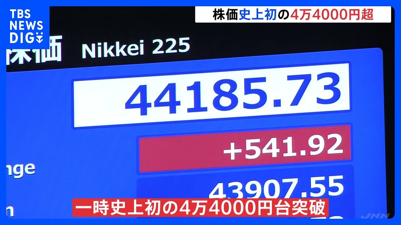 日経平均株価 一時、史上初の4万4000円台を突破 石破総理辞任表明で次期政権への期待が追い風に 午前終値4万3732円80銭|TBS NEWS DIG