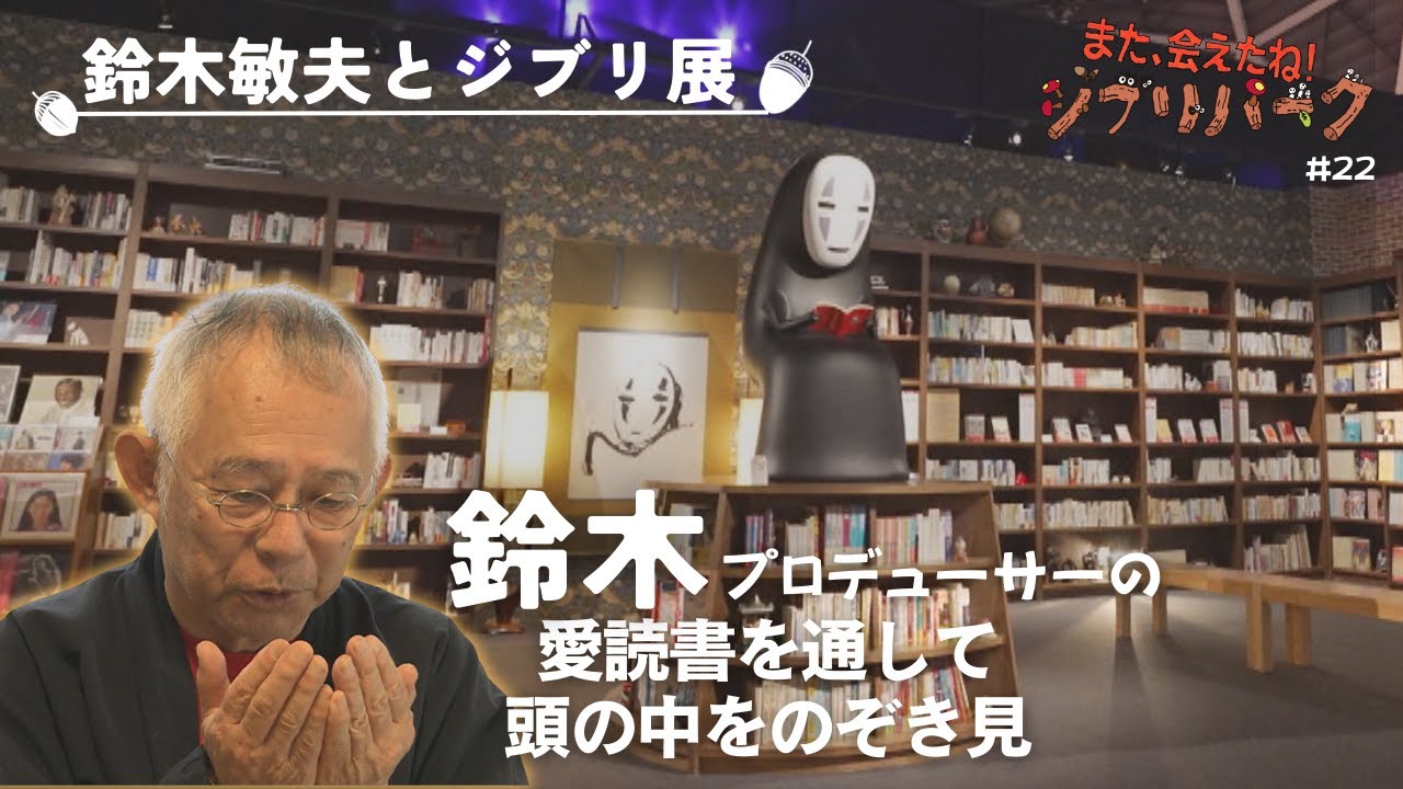 [音楽] 現在開催中の鈴木俊年ジブ店鈴木 プロデューサーが読んできたおよそ 8800冊の本が並んでいます。今日は本 を通して鈴木さんの頭の中を覗いてみ ましょう。 また会えたね。ジブリパーク とにかく小説をいっぱい読んでましたね。でも中でも 1 番読んだのが石坂次郎っていう人でこの人のねその青春者のは好きでしたね。若い男女のなんだ隠し事がなくてあっキャラかとして明るいそういう世界を描いた小説がと同時に私は負けないっていう映画があったんですよ。 俺をね、書いてたのが現事経っていう作家 でね、青春物を書かせたうまいんだなと 思って中学2年だったんだけれどその本を いっぱい集めてね、読み始めちゃうんだよ ね。そしたらこれが全部ね驚くべきことに 内容は青春者じゃなかったの。サラリー マンモだった。 サラリーマンモって分かる?会社の中の ドロドロしたね、人間関係とかね。そんな の中学時代で読んでたんだよね。こうやっ て。それから趣旨分裂なんてね。 本当僕大好きな作家で娘と私ってのがあったの分かる?そのね育ってる親父の気分で呼んでるわけ。なんで俺親父の方にこれこんなにあれしてんだろうと思って。 さすがは鈴木さん。子供の頃から随分大人びた本を読んでいたんですね。でも難しい本ばかりじゃないのが鈴木さんなんです。 [音楽] 子供の時はね、それ漫画だよね。漫画を呼んでるとバカになるって。これ随分言われたね。 今でも漫画を読むという鈴木さん。鉄ワアトムからワンピースまでその好奇心は時代を超えています。 [音楽] [音楽] でも結局ね、何かを楽しめるってことが [音楽] 1番大事なんですよね。 楽しめた時にそれが記憶になって残るでしょ。で、それが結果として大人になった時に役に立つって多分そういうことですよね。鈴木さんの秘密がここに。また会えたね。ジブリパーク。 [音楽]