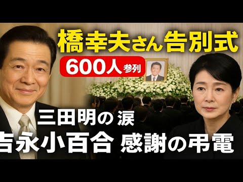 三田明さんは「たくさんの幸せと素晴らしい思い出を頂きました」と涙ながらに語り、吉永小百合さんは弔電で感謝の言葉を寄せました。