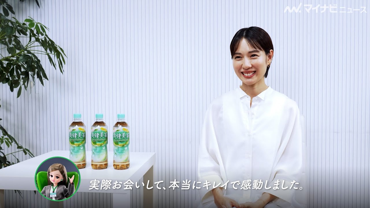 [音楽] 飲むビューティブレンド。 [音楽] 新双剣ビチ 潤いました。どうえかさんです。お願いします。 [音楽] [拍手] はい。よ、スタート。 [音楽] このカットオッケーです。ありがとうございます。ありがとうございます。 [音楽] [拍手] 皆さん、こんにちは。 期間限定で双権者広報担当となりました山 リ香です。本日はブランドアンバサダーに 就任した田え香さんから新しくなった双剣 者にまつわるエピソードや美しさについて 私から色々とお伺いしていきたいと思い ます。 この度は双剣の新アンバサダー就任お めでとうございます。 早速ですが、新ブランドアンバサダーに就任された感想をお伺いしても良いでしょうか? はい。もう子供の頃からあの名曲を 見て聞いてた私にとって今回剣ビチャーの アンバサダーやらせていただくっていうの 本当に嬉しかったですし、なんかあの時の こととかも思い出したりとかして学校帰り ながら歌ってたなとかなんかそういう歴史 を知らないうちにずっと見続けられてたん だなっていうのをすごい なんか今回決まったことによって思ったのでこれだけ長い年月お茶会の最前線に立ってる双剣美茶のすさっていうのをなんか実感しました。 [音楽] そうだったんですね。 [音楽] 今日は新CM の撮影をされたと思うのですが、撮影の感想や印象的なシーンなどありましたか? ランニングマシンを使ってあのセリフを言ったんですけど、ランニングマシンに乗って撮影するっていうのがちょっと初めてだったんで印象的でした。 [音楽] 今日憧れの田さんに会えてすっごく嬉しいです。 実際お会いして本当に綺麗で感動しました 。 田さんのように潤いのある美しさを保つためにはどうしたら良いでしょうか?インナービューティのために日頃きにかけていることがあれば私もちょっと真似して実践したいなと思っていて [音楽] でもやっぱり食事それから飲み物体に入れるものが全ての体を作ってるっていうのが今すごい感じてるんですよ。 [音楽] だから日頃の食事それからいい睡眠と運動っていう基本的なことを今大事に気にかけてます。 [音楽] [音楽] やっぱり基本的なことが大事なんですね。 [音楽] 先ほど実際に新しくなった双剣ビ茶を飲まれたと思うのですが、飲んでみていかがでしたか? [音楽] あの、今までの双剣ビチとこの新しくなった双剣ビチっていうのを飲み比べてみたんです。 そしたら今までのはすっきりとすーっと 軽やかにこう体の中に入ってく って感じだったんですけど、今回新しく なったこのトウモロコシの髭が入ってるお 茶は 本当に香ばしくって、この鼻の奥の方に ずっとその香ばしさが残ってる感じだった んですね。 香りが全然違うって思って。本とちょっとしたことなんだけどここまで香る香りも味も変わるんだとその繊細さんにびっくりしました。 [音楽] ありがとうございます。新しくなった双剣美茶は内側から水みしく潤してくれるから水分補給にぴったりなんです。 [音楽] [音楽] 新しくなった双剣ビチですが、どのような シーンで皆さんに飲んでいただきたいです か? 私まさになんか双剣ビチを飲む時ってこう 汗を描いた時とかうん。運動した時とか そういうちょっと疲れた体に爽快感が 欲しいていう時に双剣美を飲んでたんです けどなんかこういう香りが高くなったこと によって食事の時も一緒にいただきたい なってすごい思いました。新しくなった 双剣ビチの変化に気づいてくださり嬉しい です。 [音楽] 最後に皆様へお願いします。なんか本当に 新しくなって、今までの双剣ビチらしい 味わいは変わらず、さらに香り高くなった この双剣ビチを楽しみにしてもらえたら いいなと思います。本日はありがとう ございました。