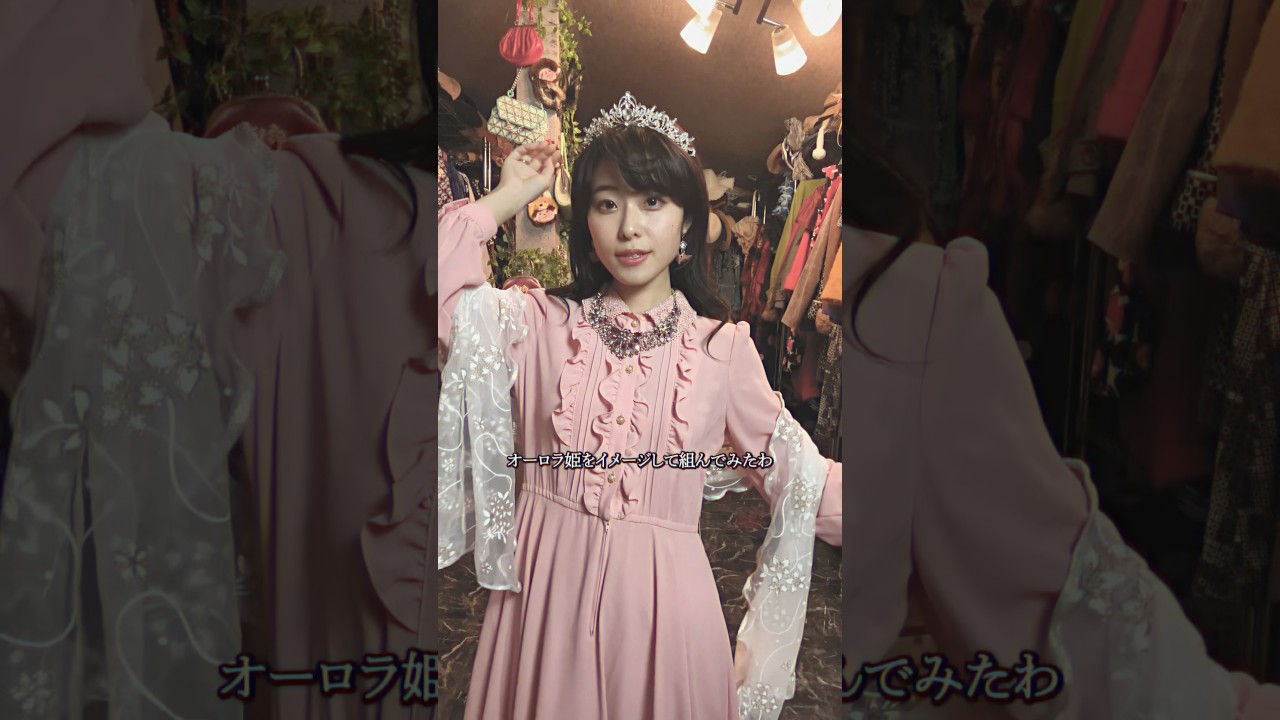 本日はオーロラ姫をイメージして3000 着の昭和レトラな古着の中から着替えて まいります。どのお衣装のオロラ姫を イメージしようかしら。うん。迷うけど やっぱりあれね。オーロラ姫といえばの ピンクのドレス。こちらに決まりお着替え 完了。イヤリングはピンクのこちら。いい 感じね。指輪もイヤリングに合わせて紫 ピンクのネックレスは大ブりでいい でしょう。やっぱりあれもつけなきゃね。 キラッキラに光るティアラ。シールは2 種類から迷いましょう。バラの描かれた こっちもいいけど。白のこちらに決まり。 足元はオリボンのこちらに決まり。さあ、 今日のコで完成。今夜の金曜ロードシ 眠れる森の美女に合わせてオールラ姫を イメージして組んでみたわ。おカ番は こちら。優しくて美しいおろら姫は女の子 の憧れよね。それでは皆さんごきげよう。