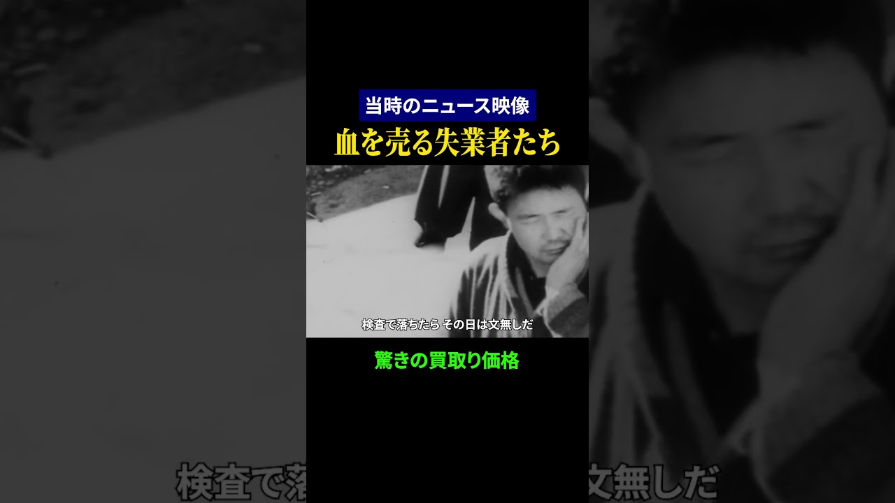 血液銀行行きのバスを待って住人たちが ひしめいている仕事に炙れた連中を血液 銀行に送り込むバス人呼んでこれを血の 定期便という待合室は1日の宿泊代と食費 を求めて集まった人たちで満員さが売血 市場だ。最初に血液の非重が測られる。1 月1回しか抜いてはいけない決まりはある が、上収車が多いので合格率は5割に満た ない。検査で落ちたらその日はもんなしだ 。この1瓶200ccが400円。調子の いい時は2本取れて800円に売れる。 窓口で料金の他増結剤と食見が与えられる 。力の抜けた足取りでフラフラと銀行前の 食堂にか駆け込む。こうして取る栄養も身 につかないまままた地として売られていく 。まるで自分の足を食べるタコのようだ。