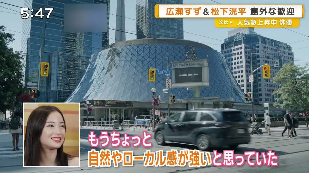 スズア tobethanキュー [拍手] 北米最大の映画祭トロンと国際映画祭で 行われた遠い山波の光の公式上映に広瀬 さんと松下公平さんが登場しました。 この作品は長崎で原爆を経験した女性が 自身の記憶を辿どるヒューマンミステリー 。 初めてトロントを訪れた広瀬さんと松下 さんに町の印象を聞くともうちょっと自然 とかローカル感が強いと思ってたけど 想像以上に都会でしたね。 で、湖ってあ、なんか両方持ってるのすごいハイスペックな街だなと思って [音楽] コーヒー飲んでたらスズメ 20匹くらいに囲まれたらしい。 そう。 優雅にベンチに座ってコーヒー飲みから サンドイ食べてたらあの気づいたら スズメに20匹ぐ囲まれて され歓迎され