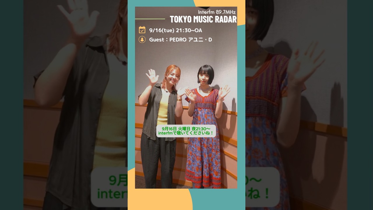 ゲストはPEDROのアユニ・Dさん!📻今夜 21:30~OA!interfm『TOKYO MUSIC RADAR』