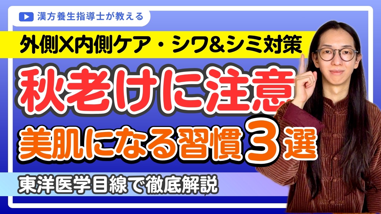 実は夏に浴びた紫外線のダメージと乾燥は 秋に一気に出てきます。そのまま掘って おくとシミやシが加速してけ顔になり やすいんですよ。でも安心してください。 今日は外側のスキンケアと内側からの大切 改善両方の自然から空きふけを防ぐ方法 美肌ダを作る方法を徹底解説します。気に なる人は是非参考にしてみてください。で は早速本題に入ります。はい、皆さん こんにちは。あなたの剣を守ります。漢方 幼女白市ロンゲメガネです。結論から言う と外側のスキンケアは保湿と日焼け止めが 大事になってきます。内側は夏に消耗した 潤いを行う必要がありますね。まずなぜ秋 は吹けやすいのかについて話その後に スキンケアと内側のケアについて話します 。スキンケアだけ知りたい内側のケアだけ 知りたいとはタイムスタンプを見てその 部分に飛んでください。 確かになぜ秋は不けやすいの? 実は秋の市街は夏とそんなに変わらないですよ。特に 9 月は夏並みに紫外線が強くて、しかもや乾燥してきて空もあんまり雲がなくて市街が直接に肌に届きやすい季節です。あと夏の間に汗を描くので汗が肌を潤ろしるんですけど秋に入ると夏かないので肌は乾燥しですね。 で、乾燥と紫外のダップパンチでシワと シミができやすいと言われていますね。 東油医学目線で見ると夏は汗をいっぱい かいて体の潤いを激しく消耗したし、 冷たいものを食べたり飲んだりして衣装が 疲れているし、気血が全部足りなくて夏の 疲れが秋に出てきて一気に吹けて見えると 考えますね。なので外側のキスキンケアと 内側のケアが必要なわけです。 まず私がやっているスキンケアについて 話します。秋に入ると紫外線は強いままな のでしっかり日焼け止めを塗ってください 。しかし日焼け止めによっては環境に良く ない成分や肌に負担をかけてしまう成分 など配合されているのでしっかり成分表を 見て選んで欲しいですね。特に酸亜鉛 アルコールは金属アレルギー持つ人、肌が 乾燥しやすい人は避けて欲しいです。 他にオキシベゾン、オのキサート 4 のメチルベンシルブチルバラベンは海の環境にあんま良くないと言われている成分で持ち込み禁止の国もあるみたいですね。 え、じゃあどれがいいの?いちいち成分表見るのめんどくさいじゃん。 そうですよね。化粧品の成分表はカタカナばっかりだし長いし小さいし分かりにくいんですよね。私が流れ愛用しているのはこちらのビーフルさんの日焼け止めです。 で、選んだポイントは余計なものが履いて いないからです。あれぐれ多分8年以上は 使っていると思います。ちなみに血装水と クリームもビーラフルさんの使ってますね 。ただネット通販がないし契約したサロン やエステでしか買えないんですけど、それ 前にメーカーさんと交渉して私の動画のさ さんであれば担当の方にメールを送って いただければ対応してくれるようになった ので詳細は概要欄に貼っておきます。気に なる人は覗いてみてください。で、 ピーラフルさんの商品は簡単に買えないの で、もし市派のものを選ぶ場合はロン アルコル参加亜鉛などのキーワードで選ん でください。または勝之助さの動画を参考 にしてみてもいいですね。 そして美白2ターンオーバーの正常化も 大事になってきます。え、私は週に1回2 回ほどルルンさんのパックをしていますね 。美白に特化したパックではないんです けど、一応ビタミンCを配合されているの で、メラリーの抑性ができると思います。 あと朝やお昼は日焼け止めと日傘で紫外線 対策は必要になりますけど、夜はしっかり 保湿を意識してスキンケアした方がいいん ですね。で、先ほども話したんですけど、 私はビーラフルさんのクリームを使ってい て、で、さらにネチノルAを混ぜて塗って いますね。で、ネチルっていうのは ビタミンAのことです。お肌はビタミン AOを生成できないのでスキンケアや食事 で補うしかないんですね。で、チロズは肌 のターンオーバーや新大を促進し、 コラーゲンやヒアルゾンさんの生を助ける ことによってシワ、針、単力低下、キアナ トラブル、リキビなど様々な腹トラブルに アプローチできますね。ただ、今までネチ ロールを使ったことない人が急に使うと 最初はA反応といって皮が向けたり肌が 赤くなったりします。慣れてくると肌が ツルツルになるので慣れるまで最初は少量 に使いましょう。あとネチロールは紫外線 に弱くて劣化してしまうので使った場合は 翌日の朝やお昼はしっかり日焼け止めを 塗りましょう。え、メイカは東洋に悔しい けどスキンケアもんだね。 いやいやいやいや、膚の先生ほど 詳しくはないんですけど、昔アメイクの仕事をしていたので、一応肌についても勉強したし、ま、男性の中では割と性力 高い方じゃないかなと思うので、ま、それなりに詳しいわけですね。 私がプロデュースする 漢方スタイルプラント前と厳選した素材、こだわった廃行、季節や様々ライフスタイルに
