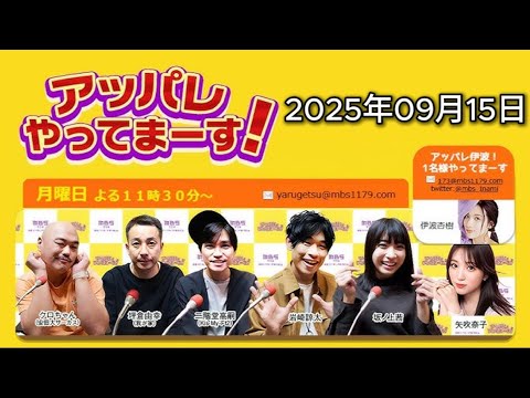MBSラジオ「アッパレやってまーす!月曜日」9月15日の放送情報です。