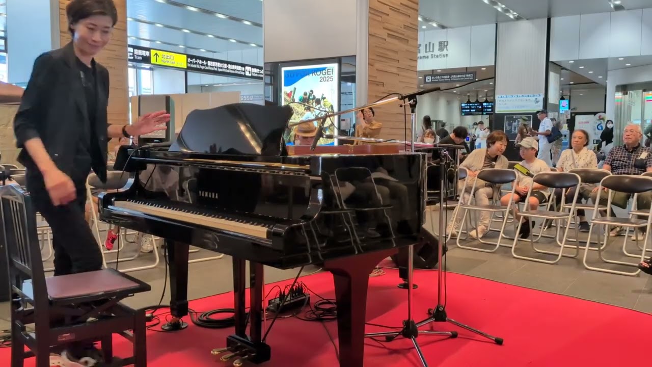 [音楽] あ [音楽] [拍手] ありがとうございました。駅中ミュージック。続いての出演者はメロディーパレット安藤月野さんです。どうぞ手でお迎えください。 [拍手] 演奏する曲目は被災城イルポルコロスト です。 [拍手] [音楽] [音楽] [音楽] [拍手] [音楽] ありがとうございまし 駅中ミュージックいての出演者はメロディット渡月さんです。どうぞ拍手でお迎えください。演奏する曲目はマヌエルポンセ、エストレリータです。 [拍手] [拍手] [音楽] [音楽] あ [音楽] 。 [音楽] あ [音楽] 。 [音楽] [音楽] [音楽] [拍手] ありがとうございました。 [音楽] 駅中ミュージックいの出演者はメロディパレット楠の木日向さんです。どうぞ拍手でお迎えください。 [拍手] 演奏する曲目は清塚深夜繋がる心です。 [音楽] [音楽] [音楽] [拍手] [音楽] [音楽] [音楽] [音楽] ます。 [音楽] です。 ありがとうございました。 [音楽] 駅中ミュージックの出演者はメロディパレット山岸んさんです。どうぞ拍手でお迎えください。演奏する曲目は [拍手] HZリオエブリシングです。 [音楽] おお [音楽] 。 [音楽] [音楽] [音楽] ສ [音楽] [音楽] あ [音楽] [音楽] [拍手] です 。 ありがとうございました。 [音楽] 駅中ミュージックいての出演者はメロディパレット前川ソ奈さんです。どうぞ拍手でお迎えください。 演奏する曲目はDジイカレスフィー チュニチアの夜です。 [音楽] [音楽] うん。 [音楽] [音楽] [音楽] [音楽] ສ [音楽] [音楽] うん [音楽] 。 [拍手] ありがとうございました。 [拍手] [音楽] 駅中ミュージック続いての出演者はメロディパレット飼口林花さんです。どうぞ拍手でお迎えください。演奏する曲目はマイルスデイビス、マイルストーンズです。 [拍手] [音楽] [音楽] [音楽] [音楽] ສ [音楽] [音楽] [音楽] [音楽] [音楽] [音楽] [音楽] [音楽] ສ [音楽] [音楽] [拍手] ありがとうござました。 [音楽] [音楽] [音楽] ありがとうございます [音楽] 。 [音楽] [音楽] [音楽] 駅中ミュージック続いての出演者は麻尾目さんです。どうぞ拍手でお迎えください。 演奏する曲目は初パワルツ10番オパス 69の2レンデルスゾーン無言カより プレストアジタートです。 [音楽] [音楽] [拍手] 見て見て見 [音楽] [音楽] ສ [音楽] ありがとうございました。 さあ、皆様富山町中音楽祭お越しいただき ましてありがとうございます。街中が音楽 で溢れ富山駅周辺が1つの劇場となる2 日間の最終日となっております。 [音楽] 本日のイベント内容をご紹介させて いただきます。まずは富山駅北口の駅前 広場ではキッチンカード出展、 パフォーマンスステージ、総務省統計局産 の出展ブースなどが開催されております。 オーバードホール大ホールでは午前10時 より富山市街中水学部や社会人による演奏 ステージが開催中です。 午後3時からは特別ゲストとして会場自衛 隊マイズル音楽隊によるスペシャル コンサートが開催されます。また オーワードホール中ホールでは午後5時 30分より細川千ひさんによるジャズ ピアノライブが開催されます。それぞれの 会場で様々な音楽が楽しめるイベントと なっております。どうぞこの後も引き続き お楽しみください。 え、そして本日のこちらの駅中 ミュージックのプログラムすぐ近くにあり ます掲示板のすぐ近くにですね、 プログラムが置いてありますのでどうぞ ご覧いただければと思います。 それでは今しばらくお待ちください。 [音楽] [音楽] 駅中ミュージック。本日 10 番目となる出演者の方はウさんです。どうぞ手でお迎えください。 [拍手] 演奏する曲目は初幻興局 A破単長オーパス 66です。 [音楽] ます。 [音楽] [音楽] ご乗り [音楽] 線 [音楽] これ [音楽] [音楽] から ありがとうございました。 [拍手] [音楽] [音楽] 皆様、本日はご来場いただきありがとうございます。駅中ミュージック、え、こちらプログラム通り時間通り進めたいと思いますので、今しばらくお待ちください。 [音楽] [拍手] [音楽] [音楽] ゴ [音楽] [音楽] [音楽] [音楽] お待たせいたしました。駅中ミュージック の出演者は大森さんです。どうぞお迎え ください。 [拍手] 演奏するはサンサンス 第5競争局のフィナーレによる特パス 111の6です。 ありがとう。 [音楽] [音楽] あ 。 [音楽] [音楽] ສ [音楽] [音楽] [音楽] ます。 [拍手] [音楽] [拍手] ありがとうございました。 [音楽] [音楽] あ [音楽] [音楽] お待たせしました。駅中ミュージック。 続いての出演者は安下正さんです。どうぞ お迎えください。 [拍手] 皆さん、こんにちは。えっと、本日はこちらのコンサート会場にお越しくださいまして誠にありがとうございます。私はあの仕事や子育てをしながら音楽活動をしております。今日はあのクラシックからポピュラーまで皆様により身近に音楽を感じてただければと思っております。それでは最後までごゆっくりお聞きください。 1局目はモツアルト作曲 アイネクライネハトムジーク 第1学省お届けします。モツルトが31歳 の時に作曲されました。日本語に役します と小さな夜の