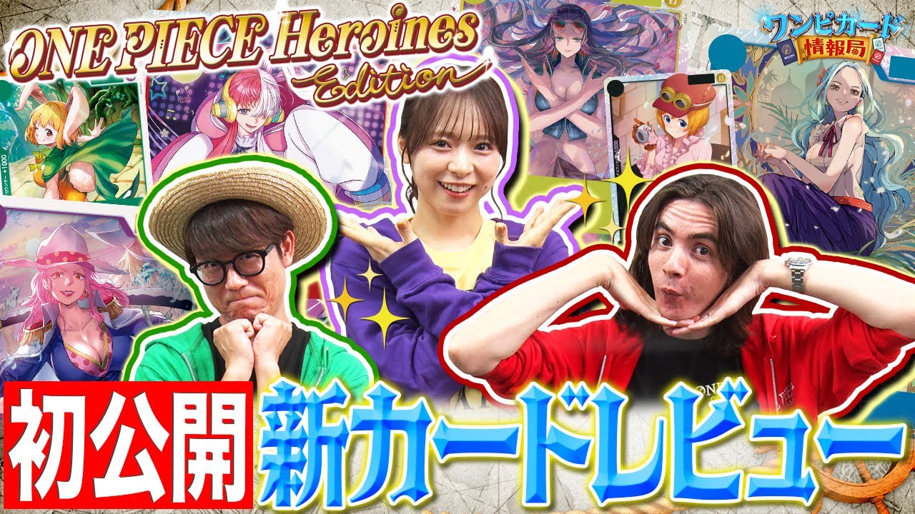 [音楽] ワンピカードイ ワンピース大好きたしとアメリカ人のギャビンそして AKB48 のクノなるみです。今日もワンピカード情報局で笑顔に なるなる。 来ました。 来ました。 あ、待ってました。 やった。 なんか懐かしい。 やっぱ毎回な当たりがいいよね。 たまにあると。 そう。あ、や、やれた。やった。今日やれたってなるから。 ちょっとそういうね、お得な感じ。 そう、俺らこの緊張感があるから。そ、 緊。 そう、そう、そう。集中しないといけないから。 ちゃんと最後まで聞かなきゃって 来るかっていう。 よかった。よかった。ちゃんとや。はい。たまにはやりましょうね。 皆さんも今日元気にやっていきたいと思います。一緒にやっていきましょう。 さあ、今回の曲はエコストラブースター第 3弾ヒロインズ2 エディション新レビュー。 さあ、今回は10月25 日発売予定のエクストラブースター第 3弾の新カードを公開したいと思います。 はい。 さあ、なるちゃん現状公開されてる情報見てどうですか? いや、もう女性人しか今んところ見てないので、 めちゃくちゃやっぱ可愛いイラストも多いですし、高まってきますね、これはもう。 はい。そうだね。 うん。 そうですか。先生もどうですか?あの、もう早くカード見たいです。 あ、すごい。前のめ。 怖い。怖い。情報が欲しいんだ。 自分のコメントいいから早く見せろと。 そう。 すごいな。 もう誰もこれは求めてない。 やばい。 ヒロインズを見求めてんだよ。ヒロインズパックでこの顔はいらないでしょ。 すごいな。 さあ、早速、え、エクスタルブースター第 3 弾の新カード公開していきたいと思います。 [音楽] まずはこちら。 おお、ちゃん。 うたちゃんいいね。可いい。いい。 あ、この衣装好きです ね。いいね。最初のね、最初の 新時代のとこね。 うん。 登場時、自分のリーダーが歌の場合カード 2枚を引く。 その後自分の手札からパワー 6000以下の元々の効果のないキャラ 1枚までを登場させる。 おお、2面展開。 なるほどなるほど。 あ、強い。どうですか?ギャビン先生。無条件で 2枚引いてキャラ出してのは強いでしょ。 強いよねえ。だから手札から 2枚。いや、ま、この歌ともう1 枚減ったのに手札が減ってない。 そう。うん。 強い。 強い。 強い。強い。 46のバニラが入ってる。 うん。うん。うん。赤歌に入る。 はい。はい。赤紫歌だ。 急に歌めちゃんこ強化じゃん。こいつ。 コーラとかあったけどコラはだいぶ加えてるからね。そうか。 まだ条件がある。うん。 だなったらもう条件なし。 そう。2 枚引けちゃう。あの赤のさ フィルムレッドの特典のプロモーションって結構バニラの赤髪海賊多方は [音楽] エモ 気づきエモ。 後エモ。 後からね、あれ結構バニラ多かったよね。 ただ4 コスのベリラは確かにルフィでした。 あ、そうそう。4コス。うわ、ルフィーも うん。 うわあ、ちゃんと絵です。 ちゃんとなんかすごいじゃん。 全然いでしょ。 すごいじゃん。 すごいじゃん。 さあ、では続いて見ていきたいと思います。次のカードはこちらです。 おお。 キャロットちゃんいいですね。キャロット 起動メインターン1回。 このキャラが登場したの場合、相手のレストのコスト 5以下のキャラ1枚までをKOする。 ほ、 その後自分の手札から像 1枚までを登場させる。 おお、ステージ登場。い や、 ほうほあ。結構ね、今までだったらそのレストにしておくとかね、アクティブにならないみたいなね、キャロットいましたけど そう。ただで像出せるのがかなり強いなと思っ はい。はい。 いや、強いっすね。 強い。 だから像の効果アクティブにもなるし、 ま、アタックしてる。ま、例えば 5 コスのキャラとがそのまま起きれるっていう。 うわあ、強いね。 おお。うわ。 え、すごい。相手にとっても嫌でしょうし、こっちにとっては得でしか そうですね。だ、キャロット強化ですかね。なんかね、ヒロインのリーダーの はい。うん。 パワーが上がってくるイメージですね。本当に。 そうですね。素敵なパックだ。 素敵ですね。 これスモーカー強化来んのか。 お おお。 てナルと。 うん。お、なるとしていう。 どうなんだ? どちらんだ? 続いて見ていきますか。 はい。では次のカードはこちらです。 お お。 え、めっちゃいい。 めっちゃいい。Bちゃん このいい。 ブロッカーついてます。 登場時。自分の手札からコスト 5 以下の特徴アラバスター王国が麦の一名を持つキャラカード 1枚までを登場させる。 その後自分はこの単中自分の場にキャラカードを登場できない。お、 なるほど。うわ、B から麦アの一味が出るんですか? 出てくの確かに もうまずそのエモさがあるんですけど ね。仲間の印字だ。前回もね、エモいカードいっぱいありましたけど耳で [音楽] どうですか?ギャピン先生。 いや、ま、普通にブロッカーがついてるし、もう同じコストで出せるからもう 0コスト4000 ブロッカーって感じです。 本当だよね。 だって5コスト以下出