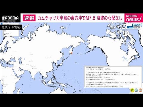 ロシア・カムチャツカ半島の東方沖で、マグニチュード7.8の大きな地震が発生しました。この地震による日本への津波被害の心配はありません。