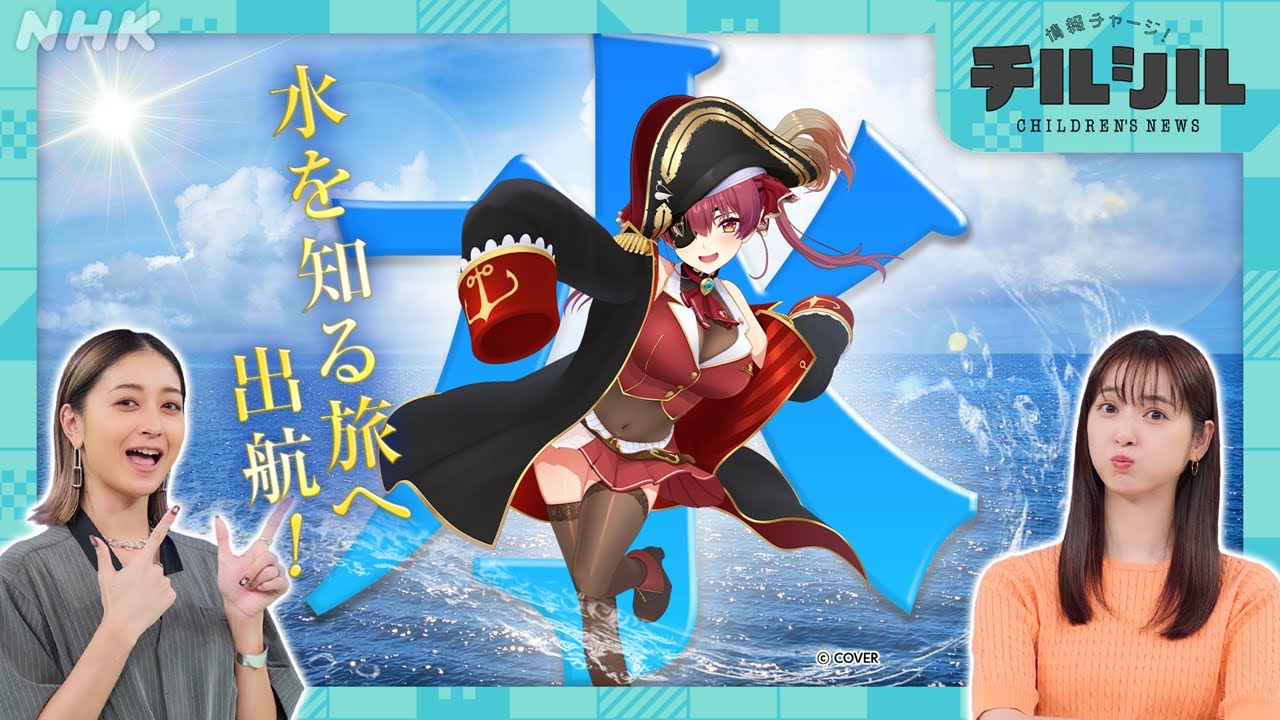 VTuber宝鐘マリンがみちょぱ&佐々木希による新スタイルの「こどもニュース」に出演!「日本の水事情」を特集!バーチャルYouTuberならぬバーチャルウォーターとは!?
