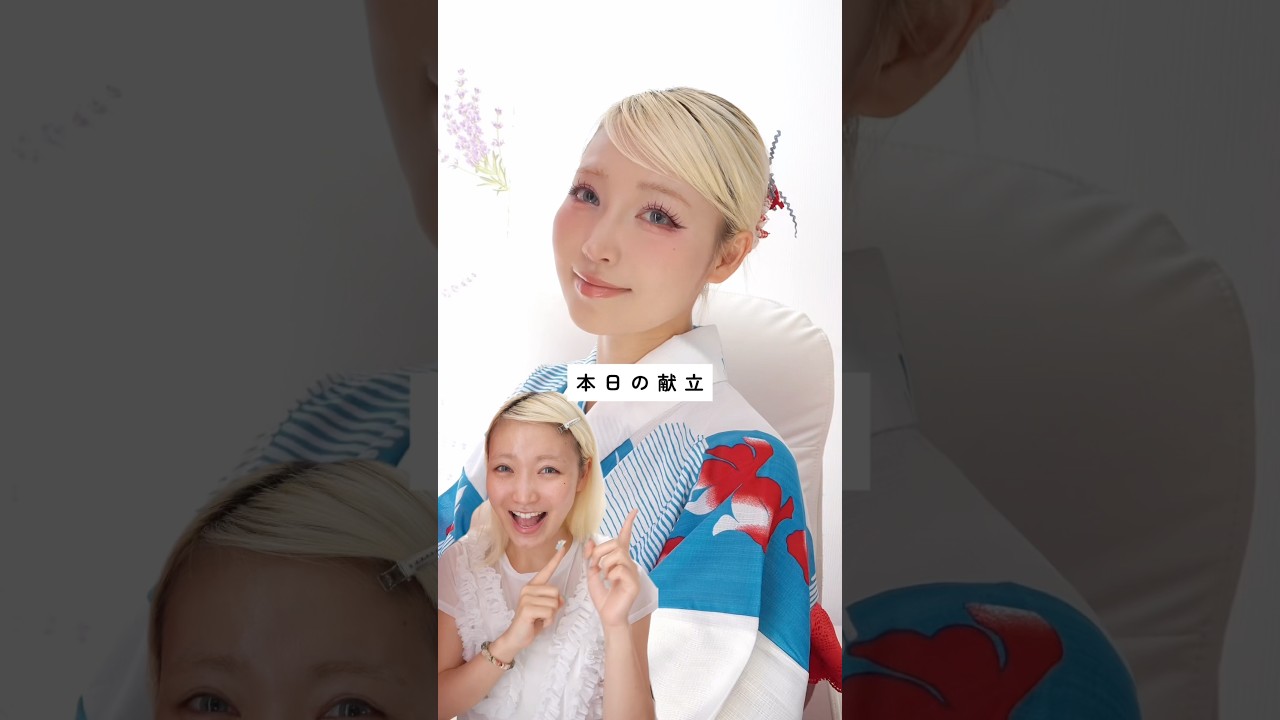 本日の献立ては花火大会にもぴったり崩れ にくい浴衣デートメイク来ました。まずは 最終携帯レベルの壁を作っていく。まずは サラサラ系でケアのブロック。おいり肌な ので崩れづらいファンデでしっかり ブロック。コンシーラーリキッド チーク仕込んだらこのカバー力をき麗に マットにしてくれる建側 だけ行きます。ンコンコン 。え、すごくない?めっちゃ綺麗なマット になって。気持ちいい。 個人的にこういう大きなブラシで塗るとさらに綺麗でおすめ。これあとすごいのがこうやって塗れてもね。おわお。マットなまなの。すごすぎる。もちろん水と同じく火にも強い。 [音楽] パウダーがいい。大シャドウのノのりもいいの。ライ間つけたら顔面完成。着替える。部屋はね。お団子にしてレッツラおゆ方。青と白地に泳ぐ真っ赤な金魚柄。どうかしら。 [音楽] みんなもっ壁キベースメイクで夏満喫 しようね。