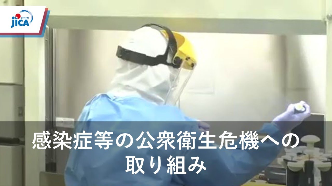 [音楽] 現在新型コロナウイルスの感染拡大を防ぐ ために世界各国の政府で様々な対応が行わ れています。 こうした状況の中、日本は感染者数及び試 数を一定程度に抑えており、その対策は 世界でも評価されています。 日本政府は感染拡大に伴い2020年4月 全国の都道府県に対して緊急事態宣言を 発出しました。 ただし宣言事態に強制力はなくあくまで 行動を控えることの協力要請です。そこで 用いられたのが行動変用を促すという 取り組みです。 手洗いや営チケットの徹底体調不良の場合 は仕事や学校は休むことに加え1換気の 悪い密閉空間2人が多く集まる密集場所3 近距離での会話など密接場面が重なる リスクの高い場いわゆる三密を避けること などを求めました。 都道府県や政令指定都市に設置された 保険所は感染症対策等の広域的専門的な 公衆衛性活動を行っていることから新型 コロナウイルス感染症対策でも最前線に 立ちました。 保険所の主な役割に患者が感染した状況や 経路について前向き後ろ向きに接触者を 調査しPCR等検査を行うことで感染者の 拾い上げを行うことがあります。 [音楽] 濃厚接触者を追跡することにより感染の 推定と全体像の把握を行い早期に感染の 広がりを捉え対策を講じています。 感染予防や心配な症状が出た時の対応など の窓口として帰国者接触者相談センターも 運営しました。感染者が病院に殺すること による2次感染や医療崩壊を防止するため です。 長崎県では県医会と長崎大学、長崎大学 病院地域の係経緯による大液による新型 コロナウイルスのPCR検査を開始しまし た。 各期間が協力し、1日から2日で結果が 出る体制を作りました。 また長崎県や長崎大学病院をはじめとする 感染症指定医療機関や協力医療機関では 県民が安心して医療を受けられるように 病床数の確保や感染対策を工夫しました。 やはりもう公衆衛生というのは全ての人が 対象なんですね。 といった意味ではですね、やはりこういろんな、ま、大学意思会、いろんなところとの協力連携というのはもう欠かせないものだと思っています。はい。 普通にインフルエンザ見るのと同じように対応していけるような全部の医療機関でコロナ対応できるような仕組みをあの早急に作り直さないといけないと思います。 2019年12月にJAは開発途上地域へ の国際協力事業の質の向上及び国際貢献 並びに学術研究及び教育の発展に起与する ことを目的とした包括連携協定を長崎大学 と締結しました。 長崎大学熱帯医学研究所は長年にわり熱帯 病の防圧に取り組んできました。 アフリカのあるいはそのアジアからの留学 生たちもお、ま、本来ここに来た時は電狗 熱とか大熱病とかそういうそのこ点ま、 現地で、え、まだ流行している、ま、熱帯 病の研究ということを目的にやってきたん ですけども、今はそれに加えてですね、ま 、みんな新型コロナウイルスの研究をして ます。 はの幅広い関係者とに日本の地見を生かした分野横断的な感染症対策のアプローチを行ってます。 まず感染症の予防に力を入れます。綺麗な水、手洗い、栄養が重要です。次に感染症の発生を一早く感知する警戒体制を強化し、拡大を防ぎます。 [音楽] このため検査研究施設の拡充人材育成を 行います。 さらに全ての人が安心して治療を受け られるようにします。 治療、研究、人材育成を総合的に行う病院 を親切拡充します。遠隔医療も導入します 。 日本への留学による専門的な人材育成も 行います。ジャイカは世界のパートナーと 共に人々の健康と命を守っていきます。
