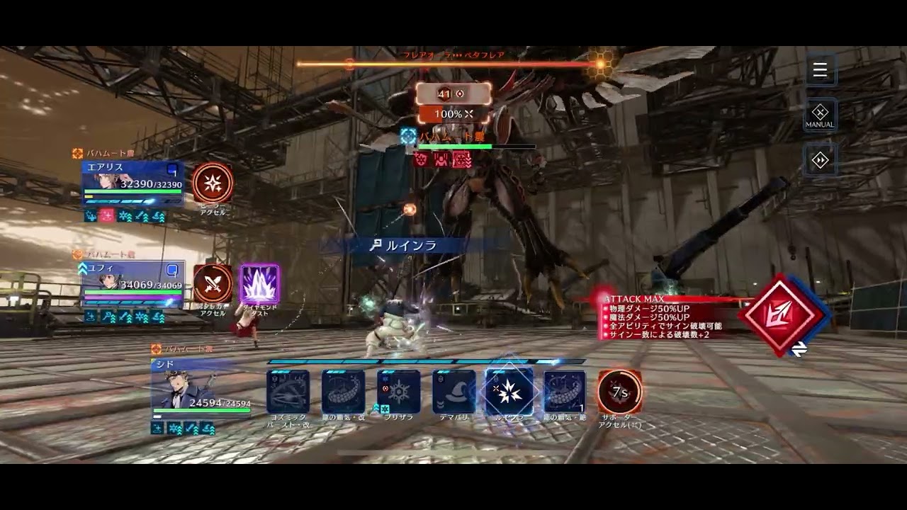バハムート震の試練 攻略 ユフィ シド エアリス ぎゅいいんギター7凸 ロケットランス6凸 紅華の大杖6凸 カムラワンド6凸