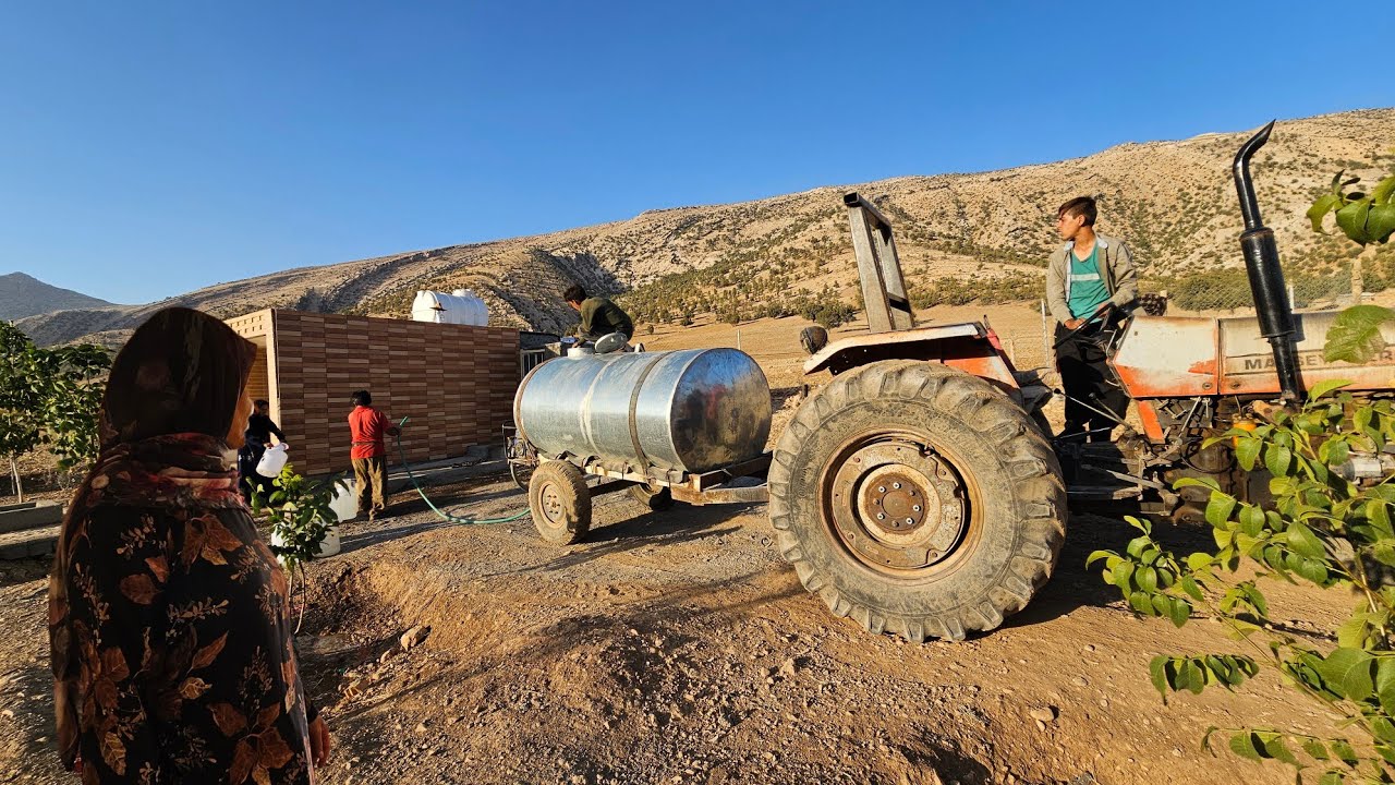You will then observe Ayub’s intensive spraying process, but their overwhelming problem remains the water. Their supply is completely exhausted, forcing Ayub to summon a tractor to refill their main water tank. The delivery is a significant challenge, as their land is extremely remote and inaccessible to most vehicles, making a heavy-duty tractor the only viable solution. The tractor successfully delivers 2,000 liters of precious water, arriving to replenish Ayub and Fatima’s storage tanks. Subsequently, an even larger trailer arrives with a massive water delivery, allowing them to finally refill their pool using its contents.