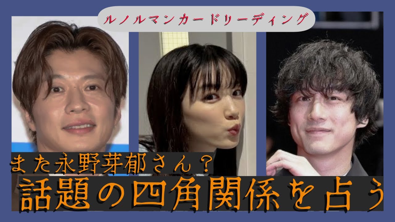 俳優の坂口健太郎さんと同棲されていたA子さん、そして坂口さんと同時期に交際?されていた永野芽郁さん、さらに永野さんと不倫騒動のあった田中圭さんの四角関係をルノルマンカードを使って占ってみました。
