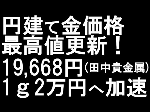 円建て金価格が、田中貴金属さんの店頭価格で最高値更新し、19,668円をつけてきています。