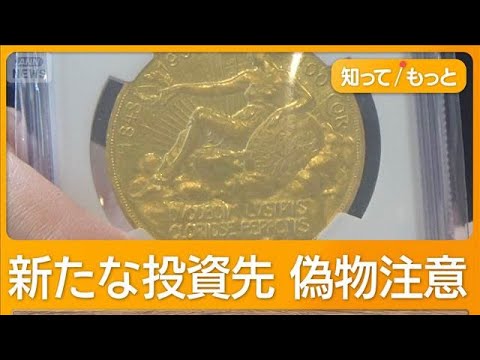 金の価格が最高値を更新する中、歴史を語る金貨や銀貨が新たな先として注目されています。 都内のアンティークコイン専門店。店内では客が熱心に品定めをしていました。 全然知らなかったんですけども 友人からアンティックコインの話をされてとかはま、自分でうん。 やってるんですけども、もう少しこう安定的にこう見れるようなものがないかなと思った。 アンティークコインとは 100 年以上前に作られた効果のこと。気象性や歴史的価値からコレクションとして親しまれてきました。 こちらのコインですね。え、こちらは、え、イギリスのエリザベス 1世のソブリン金貨でございます。 イギリスでシェイクスピアが生きていた 時代に作られた金貨。価格はなんと 3500万円です。 雲の上に浮かぶ女神のデザインが美しい。 1908年生のオーストリアの100 コロナ金貨は、え、現在380万円で はやります。10年で10 倍ほどになっているようなものもざというようなコインでございます。 1840 年に東インド会社で使われたインドのルピー銀貨は 3万5000 円。初心者にも手に届きやすい価格帯のコインもかつては不裕送の趣味だったコインの収集。 今では投資の対象として注目され、幅広い層に人気が広がっています。以前から比べれたらもう断違いに、え、もうそれこそも何倍、何十倍ぐらいに最近はですね、やっぱりあの若い方だったり、え、主婦の方、え、サラリーマンの方もですね、え、興味持って来ていただくという方は非常に多くなっております。 なぜ今アンティークコインの投資が人気なのでしょうか?年のあの金価格があの上昇えとしていることに伴ってま、あのアンティークコインもま注目されてると 国内の金価格は先週金曜日 1万9144 円をつけ最高値を更新しました。 アンティークコインは金を使ったものが 多く、金そのものへの投資に気象性が 加わる分、より大きなキャピタルゲインが 期待でき、人気が高まっているということ です。 ただしアンティークコインは価値が下がら ないというのは誤りで大きく下がることも あります。 防止する際には他の注意点もあります。 鑑定のついてないコインですね。 これを裸のコインと、えっと、申しまして偽物である、え、可能性もあるのでした。あと出てくれ。 [音楽] [拍手]