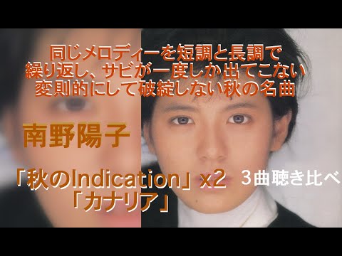 <3曲聴き比べ>短調と長調で同じメロディーが繰り返される職人芸に何度も聴きたくなる。38年前の今日発売、南野陽子「秋のIndication」〜「秋のIndication」x2、「カナリア」