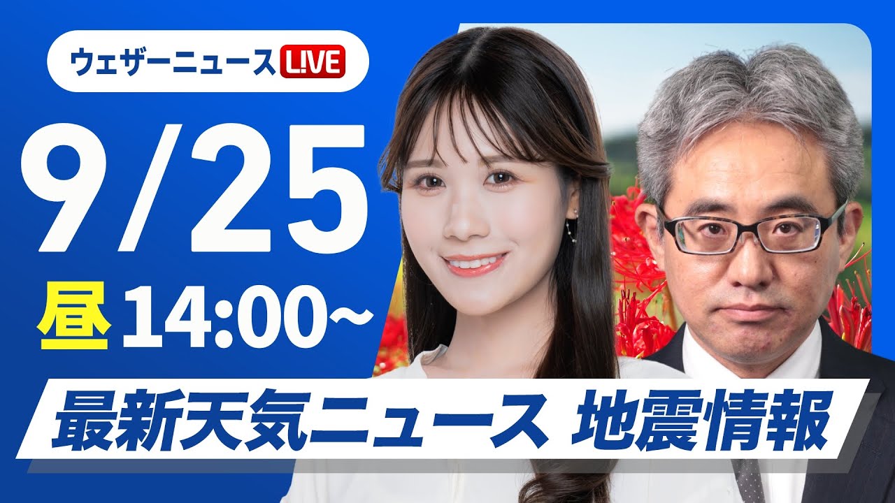 【ライブ】最新天気ニュース・地震情報 2025年9月25日(木)/北日本は荒天のおそれ 北陸や西日本は雨具の用意を〈ウェザーニュースLiVEアフタヌーン・戸北美月/本田竜也〉