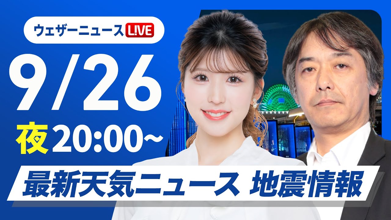 【ライブ】最新天気ニュース・地震情報 2025年9月26日(金)/週末は秋の行楽日和〈ウェザーニュースLiVEムーン・小林 李衣奈/宇野沢 達也〉