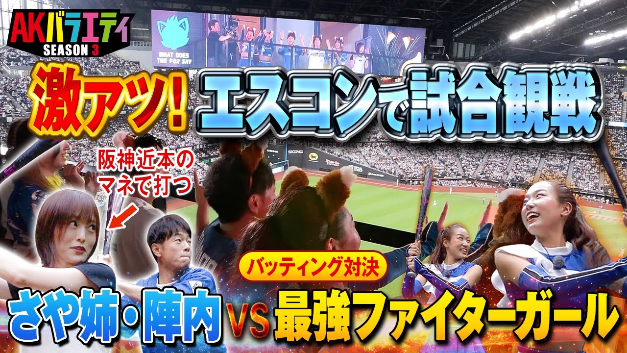 たた来た来た来た。お、来た、来た。 [拍手] [音楽] 入れ、入れ。え、 [音楽] え、怖い。 待って。 しよ。 無理。 だ、ボール見て。 いいスリングやな。あ、 AKバラエティ。お、 [拍手] おお。 常にちょっと映像でネタバレがありました。 お、今ヒットおった。ヒット。 ちょっと実選手がヒットおった。 実際に見ていきましょう。生で。 お邪します。 こちらです。う わあ、完璧じゃね。ここすごい部屋が。 え。うわ。 ええ、ちょっと外出よ。外、 外出。 ビップルーム。 これはビップルームです。 ええ。 うわあ。すごい。 うわ、やべえ。これ。 う。 あ、 これやばくない? すごい。 すごい。 うわあ。特等席ですね、 これ。特等席やね。 すごいっすね。ここ す。長めです。 やば。すげえ 大きいな。このモニターも。 モニターが近いですね。 ああ、 なんかダイヤをこんな上から見たの初めてです。 確かにこんな見下ろしてみることないもんな。 [拍手] すごい。軍事。あ、軍事選手です。 [拍手] 軍事選手はチャンスに強いのではい。 絶対に点入るとクリンナップや。強い。 ちょっと軍選手、これちょっと1 点同然追いつこう。 なんとかヒット打ってもらいたいです。 お願い。 おっしゃ。 これはすげた。 すごいね。 めちゃくちゃ見やすいね。 すごいです。 すごい。 ナイスバッティング。 すい。 やっぱ軍ジ選手のチャンスに強いんでさすがです。はい。 おお、来た。 入れフライ 1点入った。 入りました。逆転 すごいね。ちゃう。 いつ来るの? よし。来る。 いつ来るの?どっから来るの?あ、 ファイター、ファイターズガール。 ファイターズガ。 あ、つもはあそこにいるんです。 はい。ます。 不思議。 あ、ここに出てるんすか?いつも。どこにね? え?ああ。 え、どこ?どこ?どこだ? どこ? こっちです。あっち。 どこ? あ、これ。あ、これ どれ?これあっち。 どれ?あ、行っちゃった。 どれやったんや? どれやった? 多分あっち側ですね。多分どこだ? 難しい。 どこだったんだろう?もう1回欲しいな。 ああ。 あ、まあまあまあまあまあまあま、これからです。 次。 まだまだこれから。ダンスです。 あ、すごい。 あ、すごい。 誰?これマンズ。 このメンズたちは誰だっけ? ですかね?ね、 誰だろう?ワールド。 ワールドかな? あ、すごい。なんだこれ? あ、さっきやってた。 お、すごい。 あっちの方がすごいやんか。 全然映してくれない。 全然映してくれ。は、毎日来るの?毎回来るの? いや、もう今日だけです。 ええ。 はい。 全然映してくれない。 来た。来た、来た、来た、来た、来た、来た、来た、来た。た、あ、た、すごい、 すごい。 すごいよ。来たよ。すご い。すごい。 これはすごい。 よっしゃ、ちょっと逆転してもらおう。 さあ、今ね、試合中ですけども、 えっと、これはタワーイレブン。 はい。タワーイレブンのこちらのはい、タワーイレブンに温泉などもで、こんな温泉ある イレブンっていうことは はい。 そのダルビッシュ投手と 大谷翔平投手 はい。 の背番号11番から取られています。 のタワーレブない。 しかもまだ今現役やからね。 そうなんです。2人とも 普通のね、普通そういうのっても昔の選手 2 人とも現役が すごいです。 すごいな。 で、敵画が はい。こちら はい。壁画がございまして、 結構話題にもなってたことなってるんですけど。 [拍手] はい。 ダルビッシュだ。工場委員会見てます。あ、 ありがとう。 うわ、ダルビッシュと大谷さん。 そしてですね、あのダルビッシュ選手が一度エスコンに来たことがあるんですけど、 あのサイン分かります?あれ実際にダルビッシュ選手が書いたサイン。 へえ。 じゃあちょっと書いときましょうか。我々 ダメですよ。 言いわけないや。ですよ。 写真とか撮らなくていい? 写真撮れる?みんな並んでるよね? 並べ。 並んで撮りましょう。 はい。来たよ。来たよ。みんな はい。取るよ。 どうめっ ダルビッシュ投手がメジャーに行くからその [拍手] 11を大谷さんがもらったもんね。 はい。まあ、もうそんな感じではありますよね。 だから2 人が同じファイターズでチーム名になったことないのよね。 はい。ないんですよ。あのWBC の日本代表時だけです。感動しました。ファイターズファンとしては。 そう。そうですね。 さあ、移動してきましたけども、ここはどこですか? はい、こちらはタワーイレブンベースボールという場所でですね。 えっと、実際にバッティングとかピッチングとかできる スポットと。あ、そう。じゃあちょっとせっかくなんで このタワーイレブンベースボールで はい。 野球しますか? しましょう。 はい。 対決します。 対決。 対決。 はい。 こちらにはですね、最新のバーチャルリアティ術を駆使した細なゲームがあるんですけども。 へえ。 はい、人内さん山本さんチーム対水姉でバッティング対決をいたいと思います。エストフィールドやん。 はい。 すごいリアルなんです。 すげえ でルールなんですけどもキット数が多