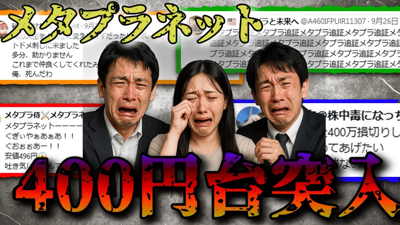 【限界】メタプラネット株価400円台突入!!今後の株価はどうなる・・・?来週が怖すぎる・・・。