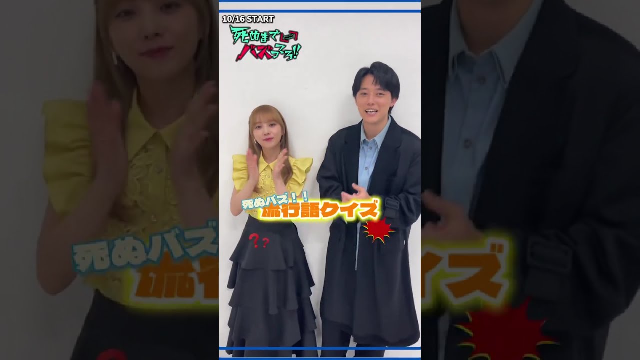 死ぬバ流行語クイズ。 [音楽] え、僕たちが出演する死ぬまでバズってるでは、え、ネット社会を表現している部分が多いということで、え、それにちんだ流行語クイズをやっていきます。 なるほど。 はい。あの、ま、なんかこう略してる言葉ですね。 みんな略すよね。 そう、そう、そう、そう。ま、最近の言葉ですよ。ま、それのこう フルと はいはいはい。 略してないバージョンと意味をお答えいただきたいなという。あ あ、難しい。 私も答えるんですね。これね、だから 1人 お互い お互いに答えて。 はい。 戦える。 そうですね。意込みはいかがですか? 絶対に負けません。うん。でも僕の方が [音楽] 1年早いんで。 え、どういうこと?1年早いんで。 あ、1年若いんで。 マウントか。 そうです。そうです。 は、 早速第1問で。馬角。 [音楽] 馬角。う、馬角。 [音楽] か、馬。はい。じゃあ私からいいですか? [音楽] はい。 え、馬、馬確定の競馬のあ、競馬的な、競馬の略語的な [音楽] はいはいはいはい。 あ、もうこいつ1着確定だみたいな。 あ、なるほどなるほど。 え、そうなん? いや、わかんないです。あ、でもまあそうだね。 [音楽] 確定。え、私全然違うのかな。うまい確定。 [音楽] うわ、 これ絶対うまいやつみたいな。 絶対それじゃん。 そうだよね。何競馬の話してんの? 絶対それだわ。 絶対それじゃん。 はい。正解見てみますか? [音楽] へえ。 うますぎ確定です。 一緒です。 まあまあ意味一緒です。ま、正解ですね。もうこれは。 はい。 新商品のスイーツ。 馬角だわ。 そういうそういうことそうだよ。え、本当に 24歳? ええ、 あれ? あれ? さあ、続いて第2 行きたいと思います。どン 古い 古い 何ですか?古いってマジでわかんない。古い なんかもっと簡単なのかと思ってました。 難しい英語プル。 え、プさん見、あの、プッシュとプルがあるじゃないですか。どう? [音楽] ああ、 わかんない時あるじゃん。 うん。 これ押すのかな、引くのかな?みたいな。押、引き度みたいな。 うん。 え、これプルいくね? これプルイっしょ。 これプルくね。 うん。い、あ、プルやっていう 引きや。 なるほど。 そうかな? 違います。 [音楽] 仲いみたいなウ的な。 え、違う、違う。あの、あ、違うか。 今日かいちゃんプねみたいな。かいちゃん今日くないみたいな。 [音楽] それどういう意味ですか? 水みしい。 ああ、なんがプルプルしてるねみたいな。 そう、そう。なんかメロいとかあるじゃないですか。メロいとか。 メロいってどういう? わからん。 もう答え見ますか?はい。どう? おらほらほら。 もうほぼ前回はえ、唇がプルプルしている状態のことだ。 ほら。 え、レブこのリップめっちゃく唇くるくなる。まあほぼ正解ですよ。くなかった。 [音楽] そんなになんかけなされることある気なんか口カサカサだったね。傘臭硬い [音楽] 臭かった。 ちょっと硬い。 やばいね。私のがプレイ