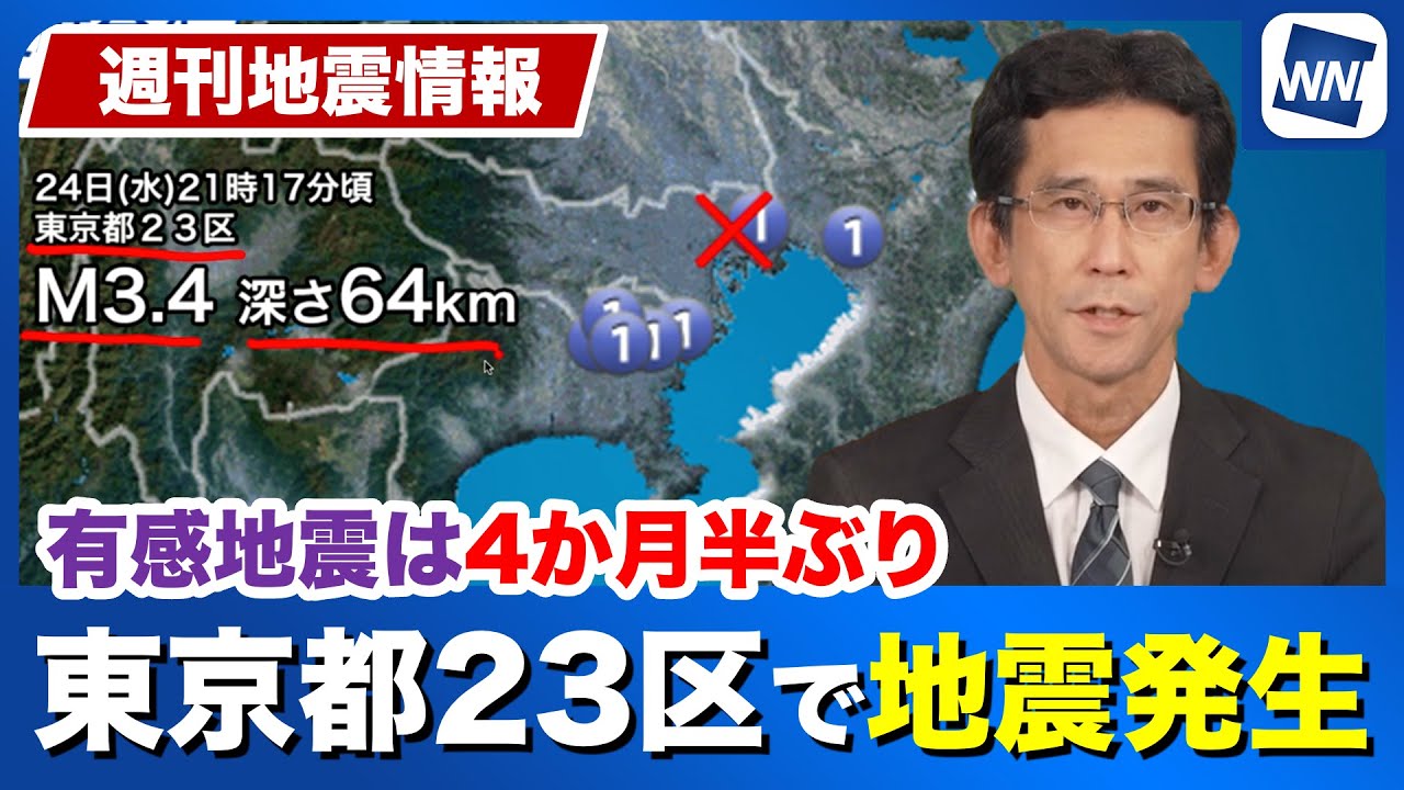 【週刊地震情報】東京都23区が震源の地震発生 有感地震は4か月半ぶり