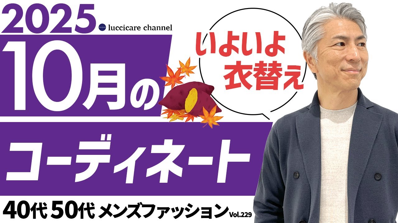 いつもご視聴ありがとうございます。 こんにちは。ルチカル店長です。本日も よろしくお願いいたします。少しだけ早い ですが恒例の10月のコーディネートと いうテーマでお話しさせていただきたいと 思います。やっと秋の予想いを考える時期 になったんじゃないかなと思います。 さすがにもう朝晩とかはそんなに暑いなっ ていう感じることもなくなってきてると 思いますので、そろそろ夏物は片付けて いただいて秋の予想を考えていきたいと いうタイミングだと思います。今回は 秋冬い物でご紹介するんですが、以前もお 話した通り、春物で秋でも使えそうな アイテムたくさんあると思います。そう いったものを取り混ぜながら秋の コーディネートを楽しんでいただく、 そして冬に向けてどういうものを追加して いこうか考える時期でもあります。はい、 ということで今回はいつものように3 パターン10月に使えるような コーディネートを考えてみましたので是非 最後までご覧ください。はい、まずは こんなコーディネートからです。パンツ からご紹介します。ETトリノから ちょっとだけ肝がかったコットン ストレッチのパンツです。形はお馴染み。 1番人気の定番モデルスーパー スリムフィットです。はい。シュッと細み のシルエットがスタイルをよく見せてくれ ます。そして若干肝がかってます。それが 秋冬演出してくれると思います。異常に 肌当たりが良くて柔らかいんですよ。で、 もちろんしっかりストレッチ効いてます。 遅くても全然楽。全くストレスを感じない 履き心地です。時期的にあんまり真っ白な パンツ、ちょっと夏っぽさを感じてしまう ので、クリームがかった色とかいきっぽい 色。これオフホワイトなんですが、これ ぐらいの淡い感じのパンツ選んでもらって いいと思います。柔らかい印象を与えて くれますし、非常に上品に見えると思い ます。そしてこれからどんどん寒くなって 12月とか完全に冬だよっていう時期にも こう色冬のホワイトとして使って いただけると思います。はい。そして足元 です。もうお馴染みです。ペランテの タセルスリッポンブラウンのスウド入って ます。非常に軽くてソウルがゴムなので 滑らないしめちゃくちゃ柔らかいんですよ 。この柔らかい履き心地と軽さ本当に疲れ ないと思います。はい。そしてトポスです 。グランサソとユニットブランドから12 ゲージのソフトコットンのクルーネックの 長袖です。色はブラウンです。はい。 ブラウンとは言っても結構淡い感じで めちゃくちゃ上品な色なので番いいんです 。はい。この時期こそコットンです。 やっぱり日中ちょっとまだ暑い日あると 思います。ま、10月1杯はね、何度か そういう日もあるので、そんな時期でも コットンだったら安心ですよね。はい。 まず洗濯できます。その日着たものすぐ 洗えるっていうのは本当にいいことですよ ね。で、ある程度整形して欲して いただければそのまままた切られる。まだ 寒くないのでインナーを着なくてこれ1枚 できたいよっていう方にもおすすめです。 チクチク感みたいなものは一切ない。あ、 当たりがいいんですよ。ソフトで めちゃくちゃ気持ちいいので1枚で切る シーズンなんかは特にホットンおすめです 。で、ロンティ扱いで切れるニット。これ はもう確実に1枚あると便利です。 いわゆるTシャツの生地でロンティを着 てるよりも確実に上品に見えます。 やっぱり我々世代なるべく質のいいものを 着てますっていうことを演出したい。なの でコットンのニットでも形はこういう ストンと落ちたようなロンティ。その わずかな差がね、見え方を大きく変えます 。はい。袖口は狭い幅のリブになってます 。なので袖をまくって切る場合なんかにも しっかり止まりますし、ニットの雰囲気 すごく出てます。めちゃくちゃ上品に見え るっていうところがポイントです。横から 見た感じもストンと落ちてるんですが、 サイドにスリットが入ってたり使いやすい シルエットかなと思います。こんなのを今 時期は1枚で着ていただく。これだけで空 っぽいき出てると思います。で、もう ちょっと肌寒くなったりとか夜とか 出かける時なんかは何か羽っておきたい よっていう時にニットジャケット羽ってみ たいと思います。 はい、来てみました。これももう大定番 です。ラルディニのウールのニット ジャケットです。これはもう長く続く定番 で、春夏用にコットン、秋冬にウールと 持たれてる方も多いかもしれません。で、 どちらかを1着持ってる方も多いと思い ます。なので、今時だったら貼る用に購入 されたコットンのニットジャケットを 羽織っておいても全然問題ないですよね。 で、持ってないのであれば今ウールの ニットジャケットを手に入れておいてこれ をまた貼る先に来てもらう。そんな使い方 ができます。何よりお仕事に行けるレベル のニットジャケットということで人気です 。ま、今回はこういったベージュ系の色を 