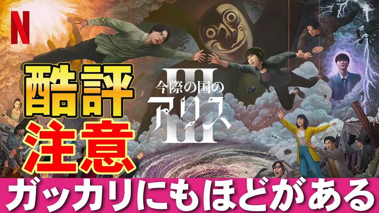[音楽] [拍手] [音楽] [拍手] どうも皆さんこんにちは。ミステリー作家 の七王です。はい。いつもね新作映画ご 紹介しているんですけど、今日はね、久し ぶりのNetflixオリジナルドラマン ですね。今の国のアリスシーズン3です。 え、本作は9月25日に配信スタートした ばかりのNetflixオリジナルドラマ の、え、これ3作目となりますね。 シーズン3です。え、シーズン1が 2020年、シーズン2が2022年に 配信されて、どちらも僕のチャンネルで レビューしていますので、是非ですね、 チェックしてみてください。あの、概要欄 に、え、目次を貼り付けておきますので、 動画の目次ですね、え、映画やあのドラマ のタイトルがあ、上に並んでいますので、 そちらから今あの国のアリスアで見つけて みてくださいね。よろしくお願いいたし ます。あ、あとね、え、最近ハイポ機能、 ハイプ機能っていうのがね、え、 YouTubeにつきまして、よろしかっ たらハイプのアイコン、え、ポチと押して いただけると、え、僕のね、この チャンネル、この動画がいろんな人に宣伝 されるみたいなんで、そちらの方も よろしくお願いいたします。ということで 、え、今の国のアリスシーズン3という わけなんですけども、はい。ま、こちらは Netflixのオリジナルドラマの中で も大人気シリーズということもあって、 楽しみにしていた人も多いんじゃないかと 思います。普段はNetflixに加入し ていなくてもこの作品を視聴するためだけ に、え、今月だけ1ヶ月加入しようかなと 考えてる人もリスナーの中にもいるんじゃ ないかな。いや、見たいは見たいんだけど 、あんまりつまらなかったんだ。らない ようだったらお金払いたくないなと。ま、 ちょっといろんな人のレビューを聞いて からにしようという方はですね、是非僕の この、え、動画をね、チェックして いただきたい。で、今回もですね、 ネタバレなしでレビューしていきますので よろしくお願いいたします。もちろんね、 もうぶっちゃけレビュー、え、正直 レビュー、期端なき、え、レビューという ことになります。はい。まあ、こういった ね、Netflixみたいな、えー、 サブスク、サブスクリプションサービスは 必要な時だけ加入するのが、え、コスパが いいですよね。Netflixは今後 スポーツ感染コンテンツにも手を広げる なんかそんなね、プランがあるようで。 いや、そんなことしたら6、あの、月額が 上げられそうなんでね、ま、ちょっとね、 嫌というかやめて欲しいですね。ああ、 WBCくらい民法放送でいいから無料で 感染したいもんですよね。え、それは ともかく、え、僕も今の国のアリス シリーズはこれ大ファンでして、え、 シーズン3はそれこそ首を長くしてお待ち しておりましたよ。デスゲーム系という ことでイカゲームと比べられがちですけど も、面白さとスリルとサスペンスでは負け てないんじゃないかなと思うんですよね。 何よりNetflixが出ているだけあっ て純宅な制作費を投入して描き出される 世界観は悪ですよね。前作の渋谷の町が 廃墟と貸す戦闘シーンはあれはもうね、 見応え抜群でした。また東京都内が無人と 化してまるで都心全体が8番出口のように なってしまう。これもなかなかの、え、 見所ではあると思うんですね。そして作中 で展開されるデスゲームの数々。徹底され たルールが容赦なくて、でもちゃんと 見応えのある面白いゲームとして成立して いるところが素晴らしいんですね。ま、数 あるデスゲーム系代表的なのはイカゲーム ですよね。他にもエスケープルームとか 色々ありますけど、このデスゲームの内容 はね、いわゆるゲーム性ですよね。ゲーム 性の面白さは僕はこの今の国のアリスが 1番なんじゃないかと思っております。 それぐらい面白いんですよ。人間ドラマ 以上にデスゲームがちゃんと面白い。 ゲームの内容はバラエティに飛んでいて 頭脳プレイ、肉体プレイチームワーク プレイそして心理プレイとそれぞれかこ たる特徴があるんですよね。その中でも 特に心理プレイゲームがプレイヤーたち から恐れられていました。なぜなら人の 行きたいと願う思いを容赦なく踏みにじる 残忍なゲーム内容だからなんですね。 イク田のデスゲームを勝ち残ってきた アリスとうさぎですが、え、漫画原作の 本編完結後に今の国のアリスリトライと いうタイトルで全2巻という短い ボリュームにてアリスのその後が描かれ ました。え、そこではアリスとうさぎは 結婚してスクールカウンセラーになって いるんですけども、本作シーズン3では 確かにね、もう結婚はしてるみたいなんだ けども、うさぎはスクールカウンセラーを 目指してまだね、実習を受けている身なん ですね。だから今回の物語は今の国の アリスリトライよりは少し前ということに なるんですかね。アリスとうさぎが今の国 で全てのゲームに勝利し、元の世界に戻っ てから4年が経ちました。2人は結婚して 幸せな日々を過ごしていましたけども、 ある日うさ