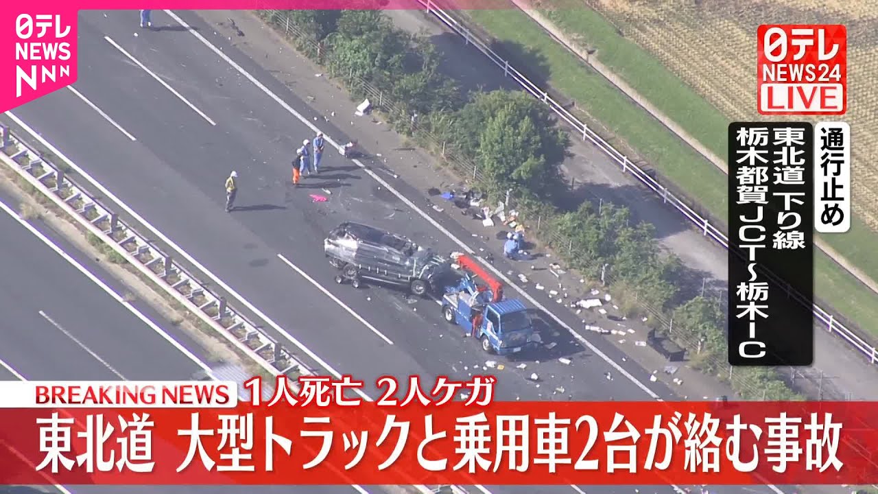 現場は栃木インターチェンジから1.5キロほど北で、大型トラック1台と乗用車2台が絡む事故が発生し、乗用車の男性運転手1人の死亡がその場で確認されたということです。