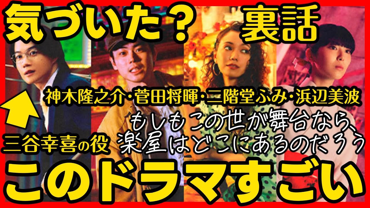 フジテレビのドラマ。もしもこの世が舞台 なら学屋はどこにあるのだろうについて 放送開始前に知っておくと良い情報。 そしてドラマに関して事前に出ている裏話 をどんどんご紹介します。この中で特に 楽しみな視は誰ですか?選択肢は4つです 。1菅田正2階道文3上木竜之助 4浜辺南YouTube動画のコメント欄 にアンケートを設置しているので是非回答 をお願いします。そして他の人が何と答え たか是非確認してみてください。 フジテレビのドラマ。もしもこの世が舞台 なら楽屋はどこにあるのだろう?ドラマ 考察。この動画のコメント欄に感想を 書き込んでみんなで気持ちを共有し ましょう。このドラマについて過去に公開 した動画をコメント欄にある再生リスト から見ることができます。ドラマ放送直後 に考察ライブ配信を開催しています。是非 次回はリアルタイムでドラマ視聴後僕の チャンネルに遊びに来てくださいね。この チャンネルでは模し学に関する考察動画を 今後も引き続き公開していきますので、 引き続きチェックしたいという方は チャンネル登録をお願いします。 三谷孝樹さんが25年ぶりに民法 ゴールデンプライム隊のレンドラ脚本を 担当されるということで注目のドラマが こちらの模学ですね。もしもこの世が舞台 なら楽屋はどこにあるのだろう?公式Xで 模学という省略語が使われていたので今後 は模学と呼んでいきたいと思います。最近 だとNHKタイガドラマ2022年放送の 鎌倉殿の13人が記憶に新しくすごく 面白かった覚えがあります。放送開始前は 平安時代から鎌倉時代にかけての話で興味 を持って見られるか心配でしたが鎌倉殿の 13人は結果的にすごく引きこまりました 。三谷孝樹さんが過去に手掛けられた ドラマだと振り返れば奴がいる古忍ザブロ 王様のレストラン総理と呼ばないであたり が僕の好きな作品ですね。 今回の模学は1984年の渋谷を舞台にし た青春軍造劇で三谷孝さん自身の経験に 基づいたオリジナルストーリーなんだそう です。希望に満ちて後景期に浮き足立つ セ想の一方で渋谷の片隅にはまだ何者でも ない若者たちの苦悩と挫折時には恋い模様 もあった。栄光を追いかけるもの。恋に 破れるもの迷惑で厄介なもの街を飛び出し たいもの1くも2癖もあるが故え不器用で 生きべた。橋から見たらうむ。でも本人 たちは至って真面目で一生懸命。そんな 人間臭い人たちが目と目を合わせ心と心を 通わせ時に激しく衝突しながらも エネルギッシュに生きた1984年という 時代を三谷ワールド全開で笑いと涙 いっぱいに描いていくということで コメディタッチで描かれるドラマのよう ですね。 そして出演者がすごく話題です。主演は 菅田正さんですが、その他に二海文さん、 上木竜之助さん、浜辺南さんという4人と 主人公ではと思えるような豪華な俳優さん が揃っています。おそらくコメディかと 思うので、この人気俳優さんたちがどんな 風にコメディを演じられるのかという点も とても楽しみです。ある1つの坂道の町に 住んでいる人、全員の人生が同時に描かれ ていきます。些細なことで喧嘩したり 気まずくなったり仲直りしたり愛し合っ たりみんなどこかしらに欠損があって完璧 な人は登場しないし物語もうまく進んで いくようでそうではなくなったり エンターテイメントに魅了された人々が 集まる切那的に凝縮された力のようなもの が描かれたということでした。 第1話のストーリーが公開されているので 確認していきましょう。昭和59年秋川 行きに憧れる演出家の卵く三成は路島に 迷っていた。彼のあまりの応望ぶりに劇団 から追放されてしまったのだ。当てもなく 彷徨う首が迷い込んだのは怪しい アーケード街だった。ストリップ小屋の ネオンが光るその商店街は8分坂。渋谷駅 から8分でたどり着くから8分坂と呼ばれ ているんだが、そのアーケードにはこう 刻まれている。PlaySPEwhat hashappen?何があったか話して ごらん。無料案内所のおばばに誘われて首 はWS劇場の扉を開くということでこの8 分坂部隊にいろんな人の人生を買いまみる ことができるということみたいですね。 今公式のキャラクター紹介には21人の人 が掲載されていますが、25人ぐらいの人 の人生が描かれると書かれていたので、後 から4人ほど追加されるということですか ね。主要の4人だけ確認しておきたいと 思います。津田正さん演じる久部三成功 夢見る劇団演出家川幸夫吉夫に憧れ理想の シェイクスピアを作ろうと奮闘する。二 階堂文さん演じるこ田リカWX劇場の段差 アーティスティックな雰囲気をまとう要な 女性上木竜之助さん演じる放来生吾新人の 放送作家ジャケットにネ体姿三谷青年が モチーフになっている浜辺南さん演じる 江頭ジュリ渋谷にひっそりと佇む粉神社の 巫女4人がどう関わっていくことになるん でしょうか。 ここからは常に語られているこのドラマの 裏話についてご紹介していきたいと思い ます。まず菅田正さんのインタビューから 。大体1日の話を1話