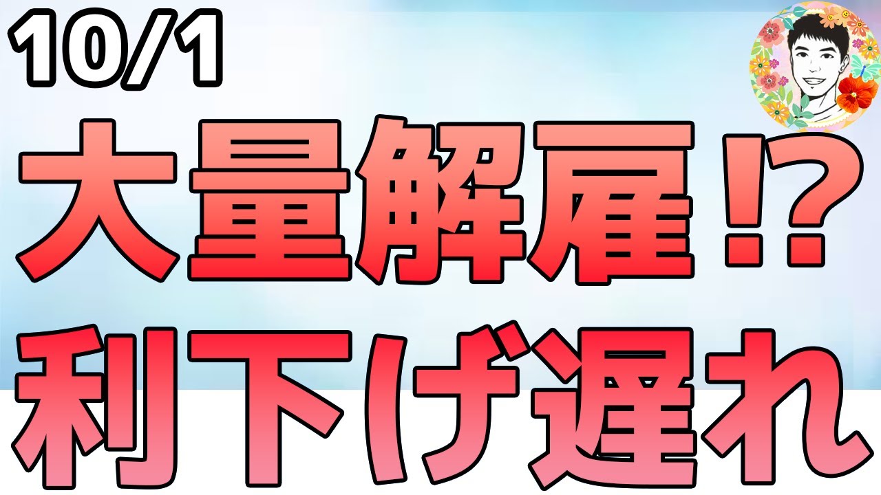 政府機関で大量解雇の可能性!雇用統計なければ利下げできないか⁉【10/1 米国株ニュース】
